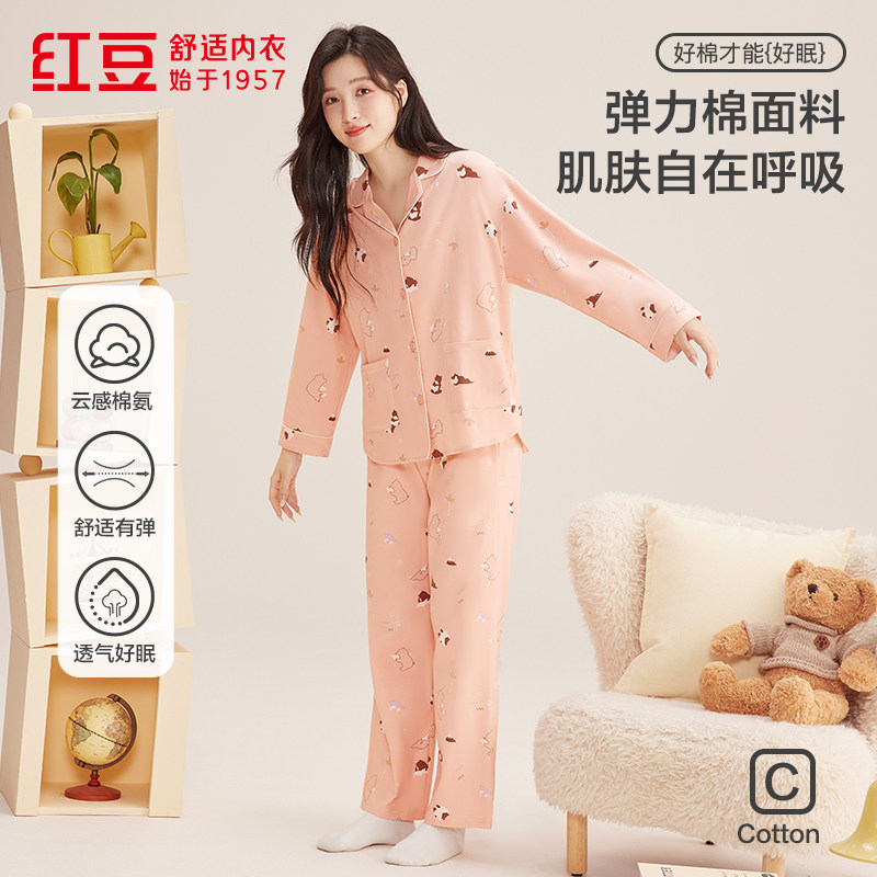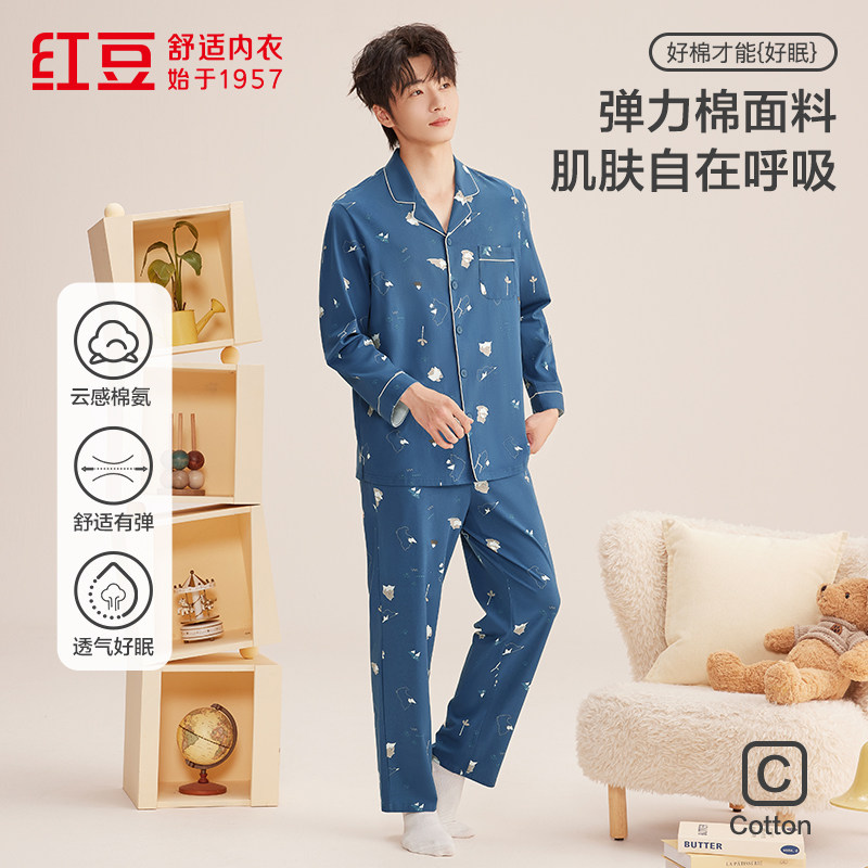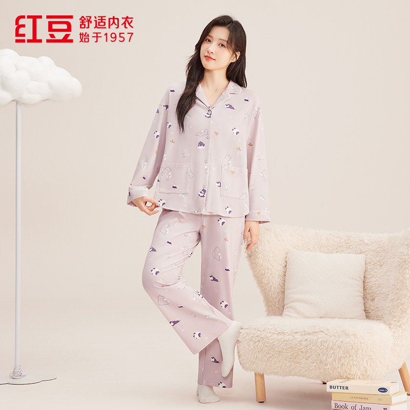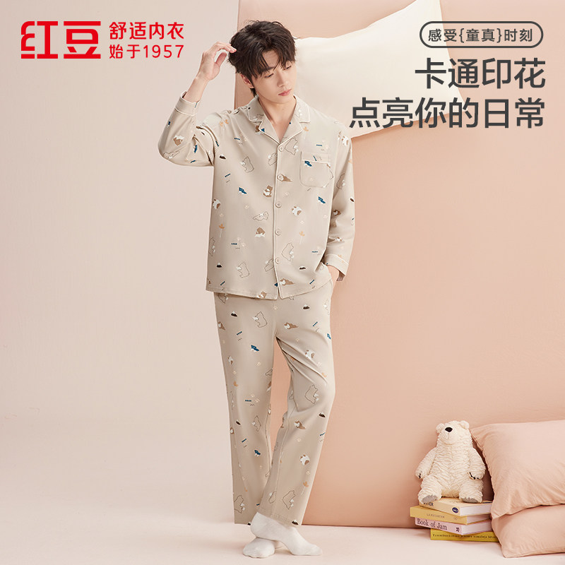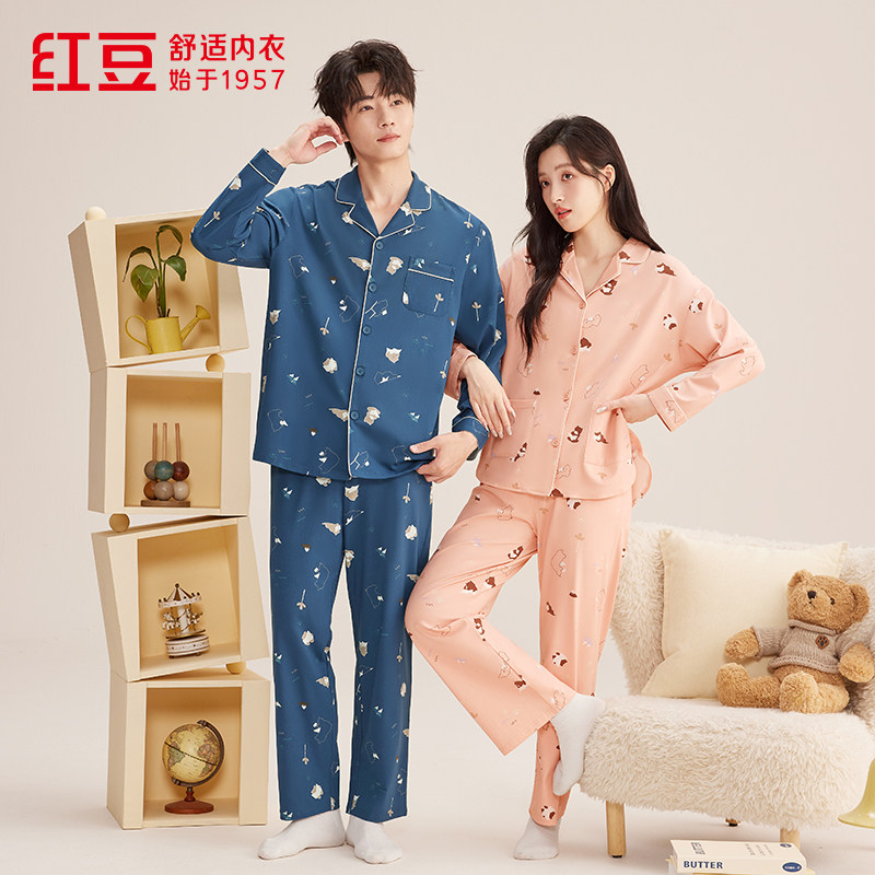 📚 红豆专柜同款云感弹力棉情侣休闲开衫男士女士满印睡衣居家服套装