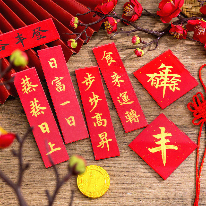 📚 手写定制蒸蒸日上2026年冰箱贴丰步步高升对联新居入宅亚克力磁贴