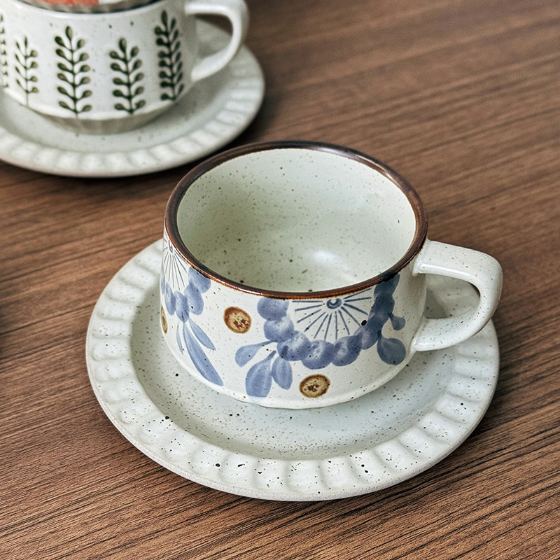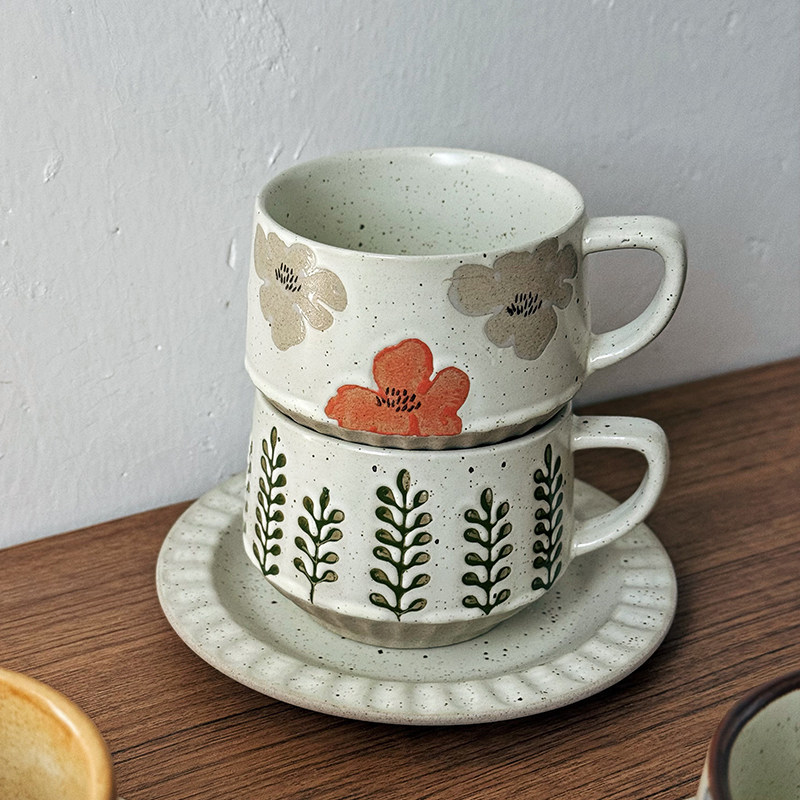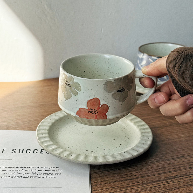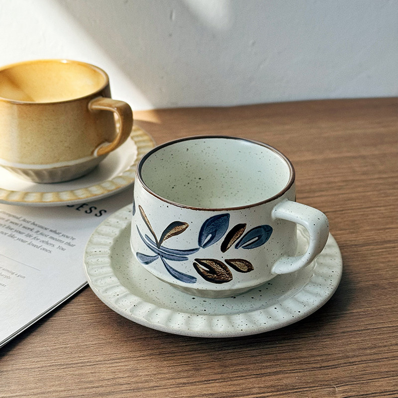 📚 日式复古手作咖啡杯子中古风拿铁杯拉花杯高颜值漂亮陶瓷咖啡杯碟