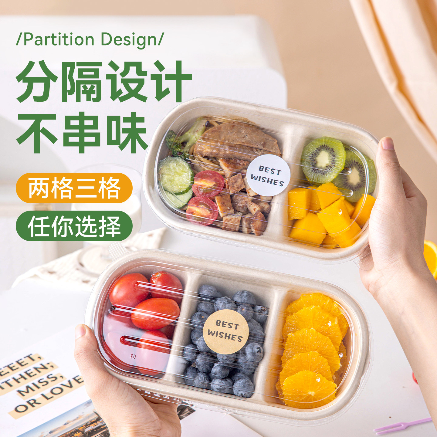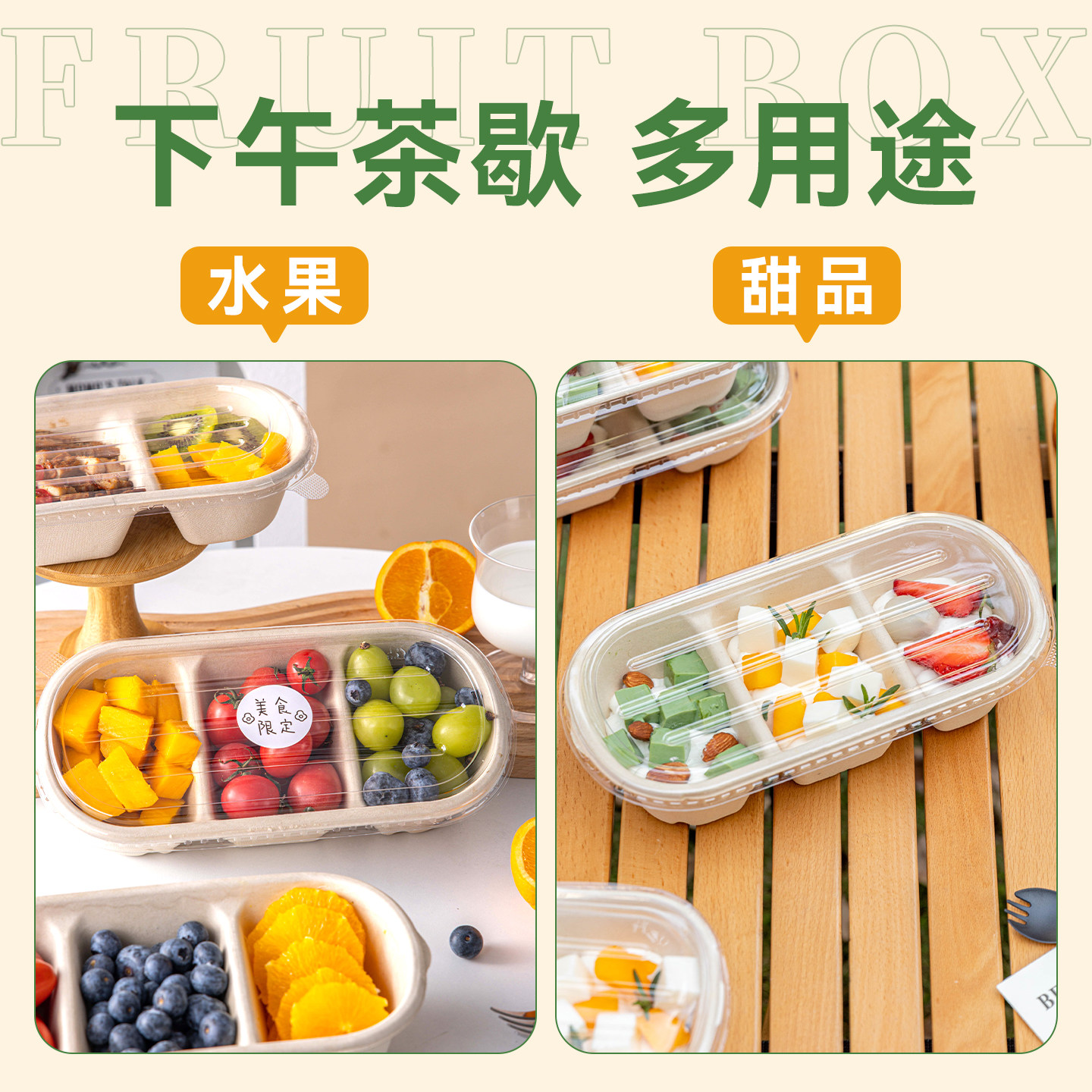 📚 一次性餐盒水果便当盒轻食果切打包三格拼双隔下午茶分装野餐有盖