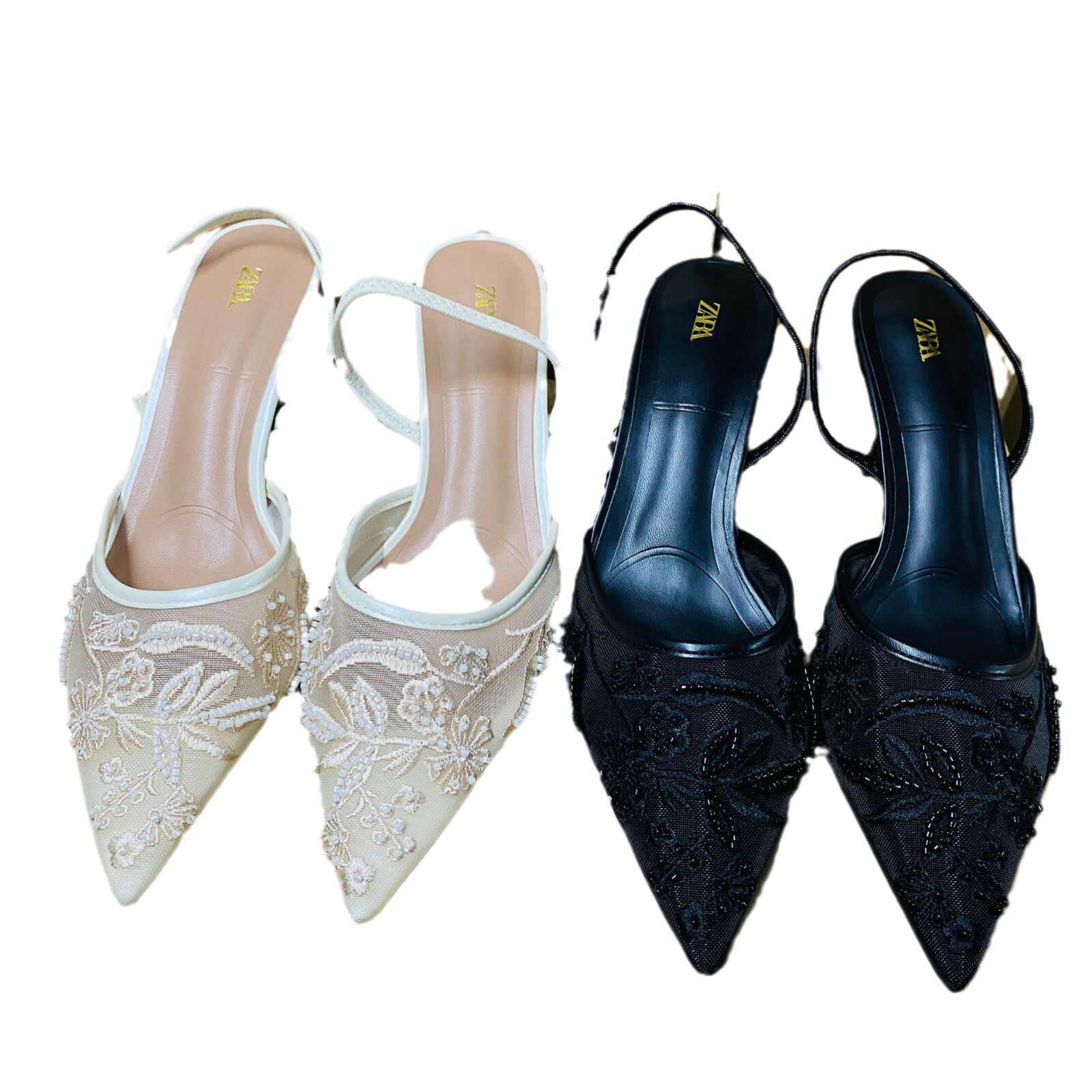📚 ZA 2025年新款新品 尖头包头后空纯色 刺绣网面细高跟穆勒鞋8236