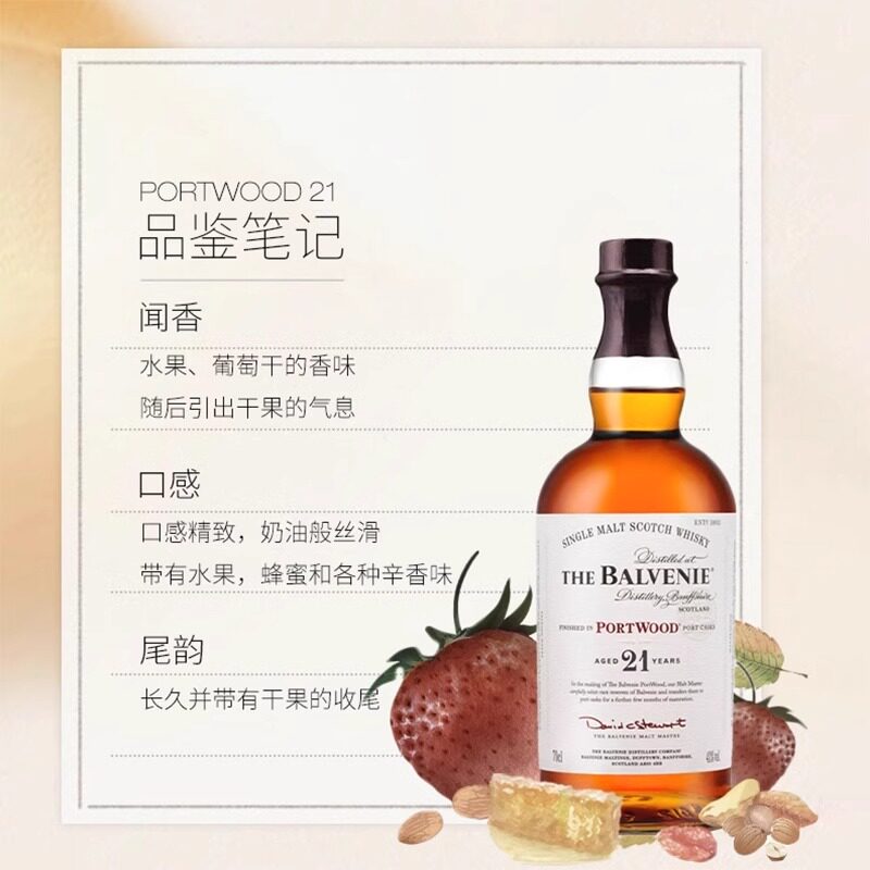 📚 The Balvenie百富21年波特桶单一麦芽苏格兰威士忌700ml正品行货