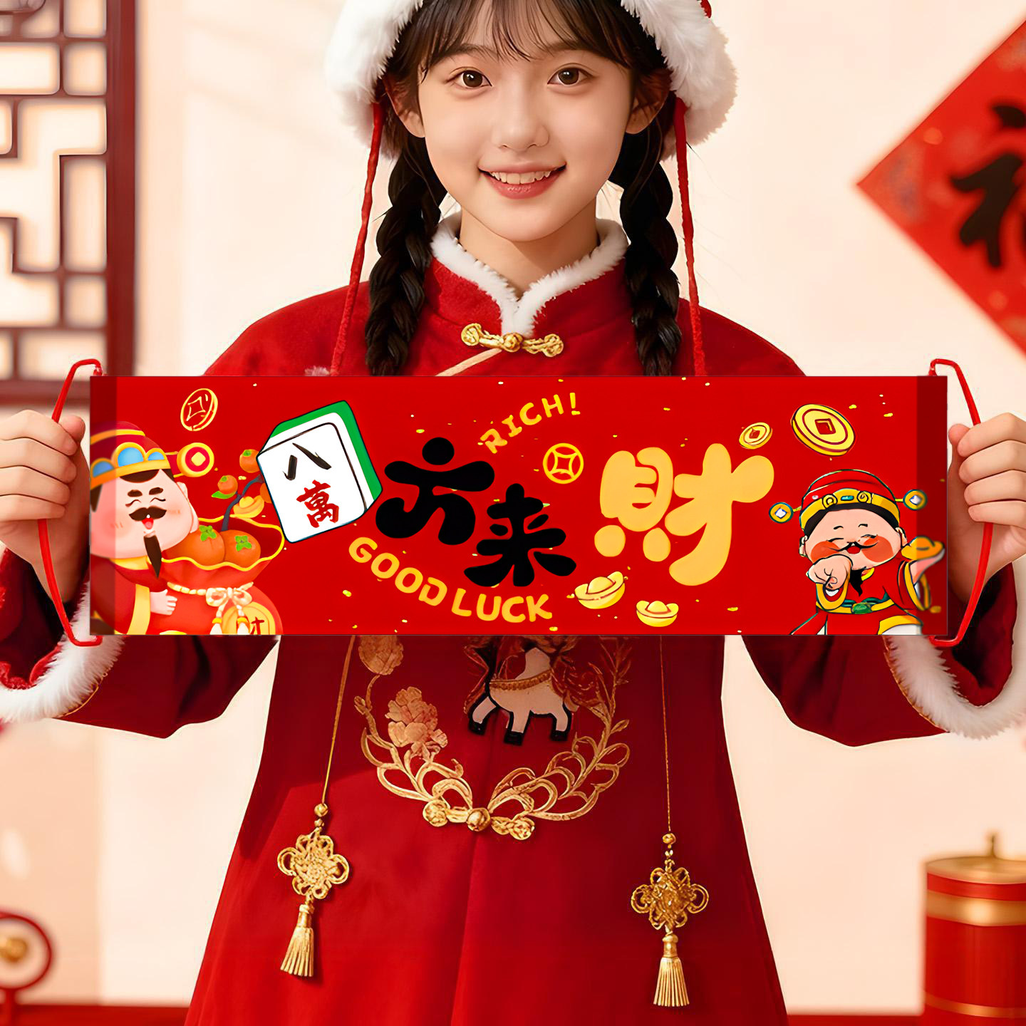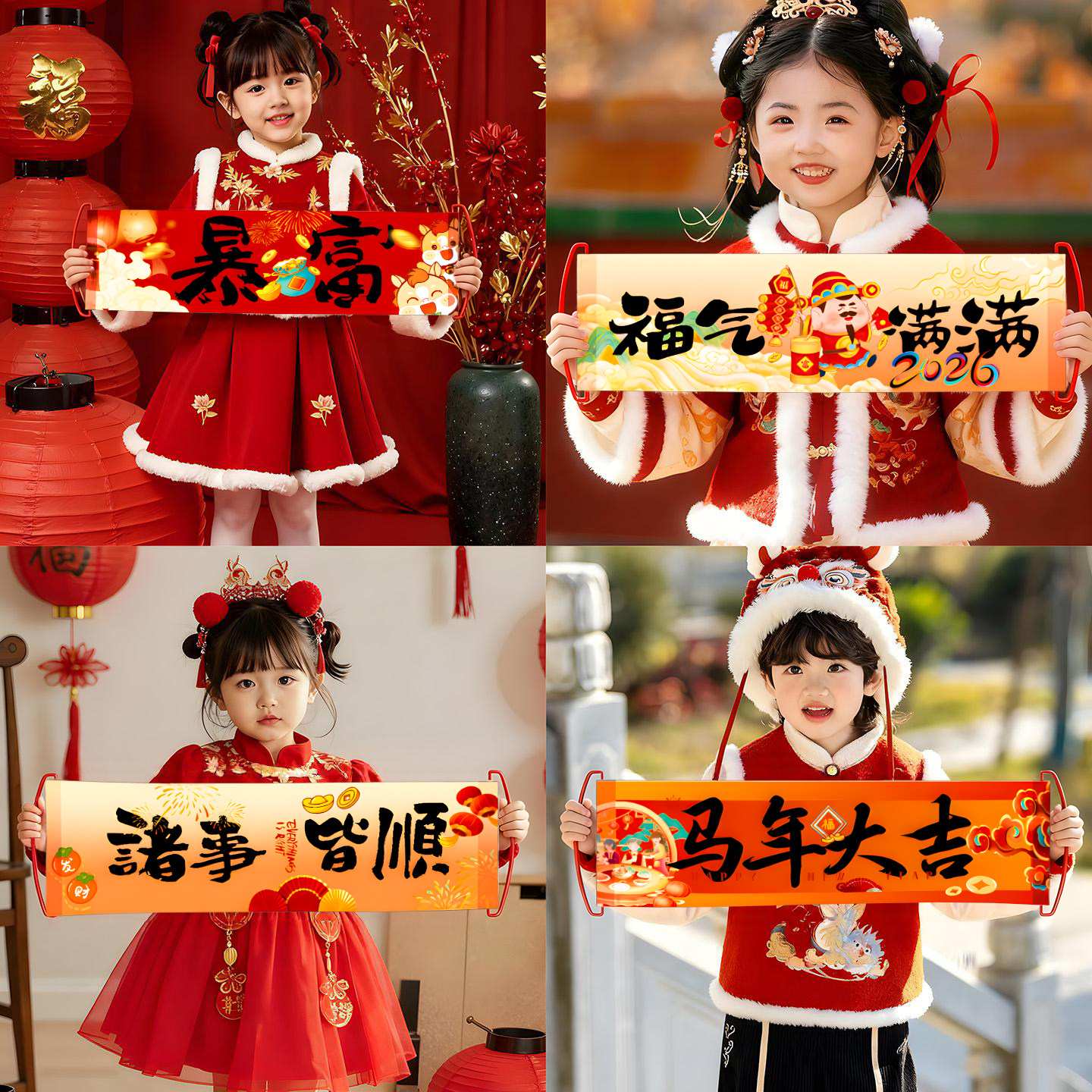 📚 2026马年装饰新年年会手拉旗拍照道具幼儿园手持对联横幅春节布置