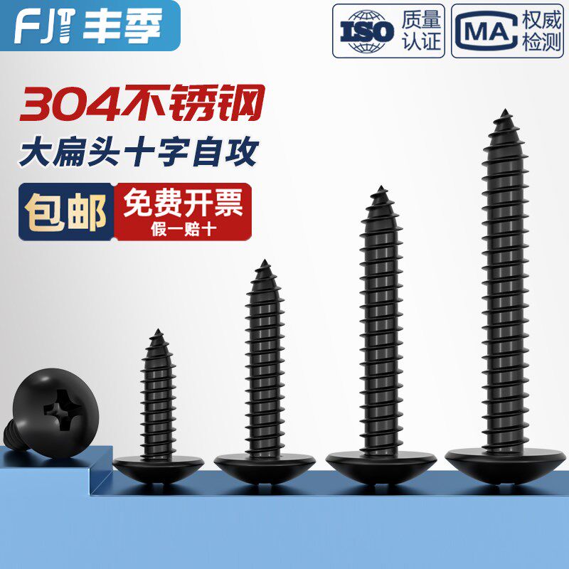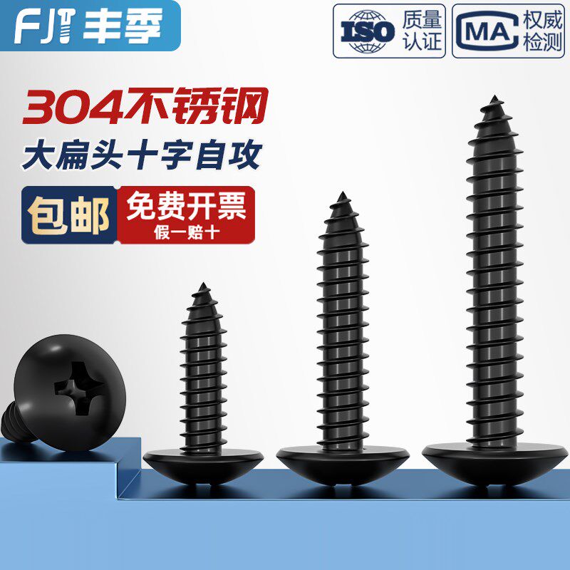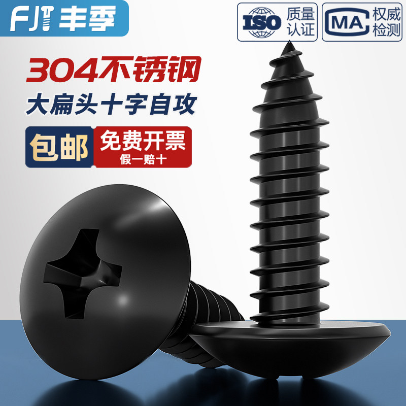 📚 国标黑色304不锈钢十字大扁头自攻螺丝钉蘑菇头镀黑锌M3M4M5MM6mm