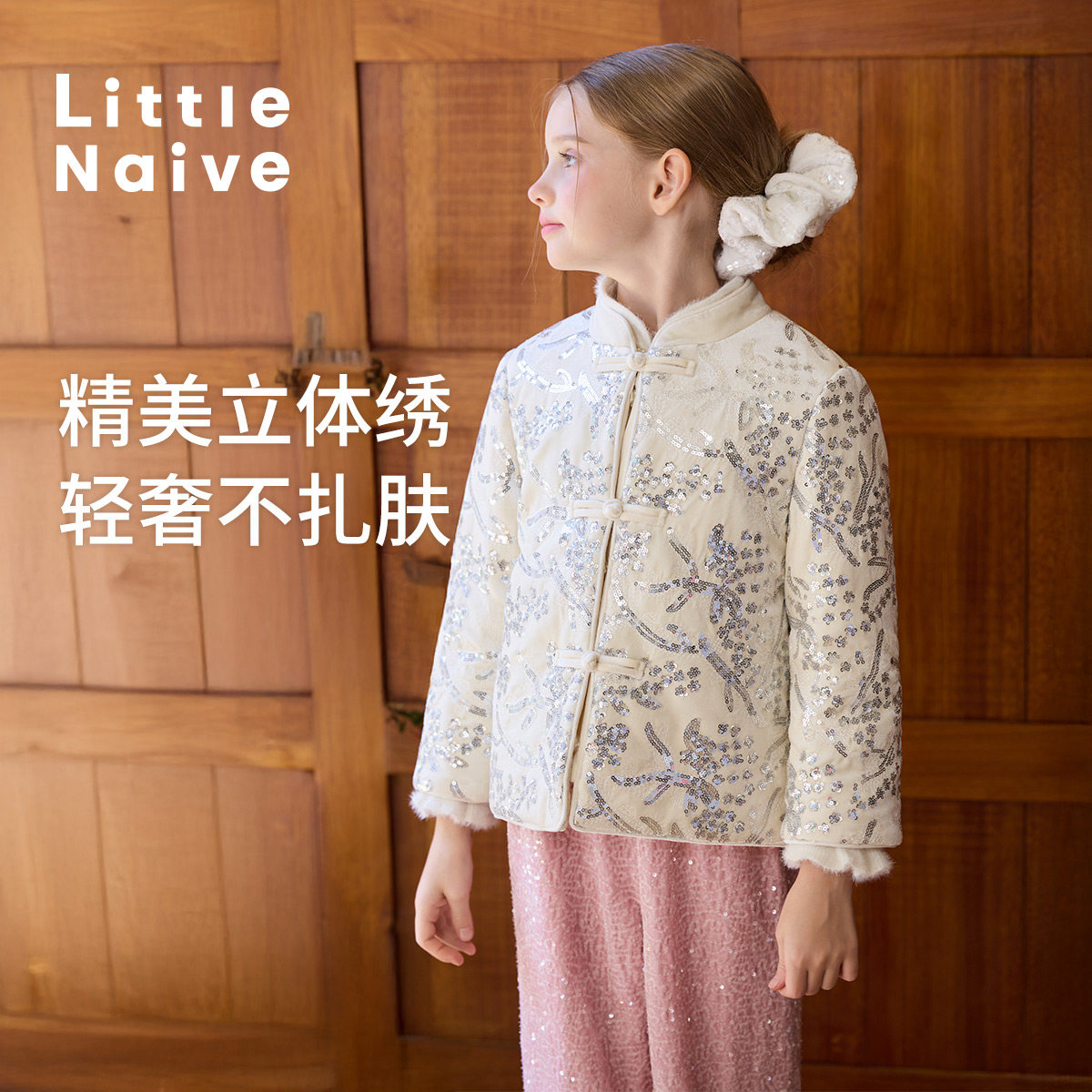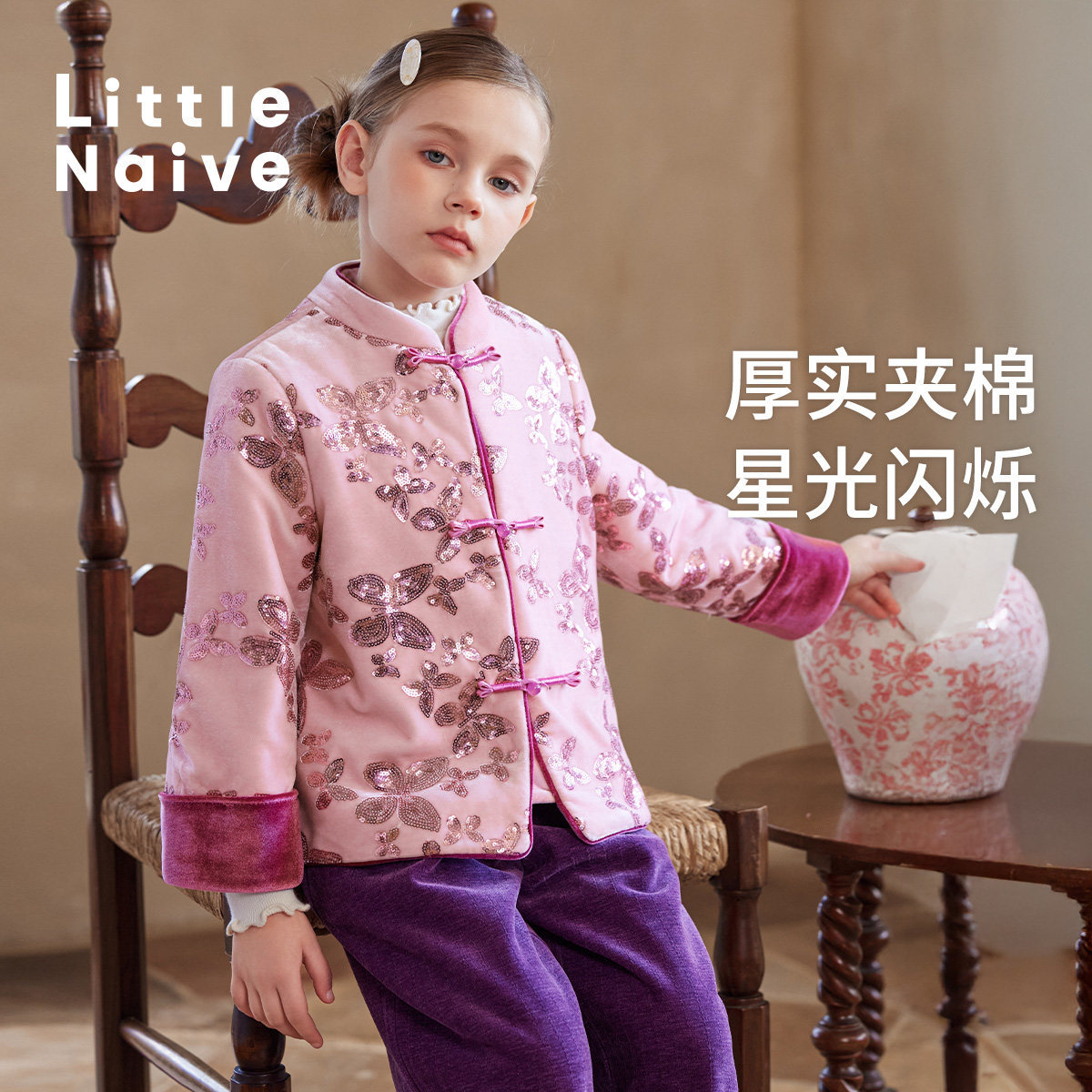 📚 LittleNaive女童新中式外套冬季国风丝绒保暖棉服儿童刺绣拜年服