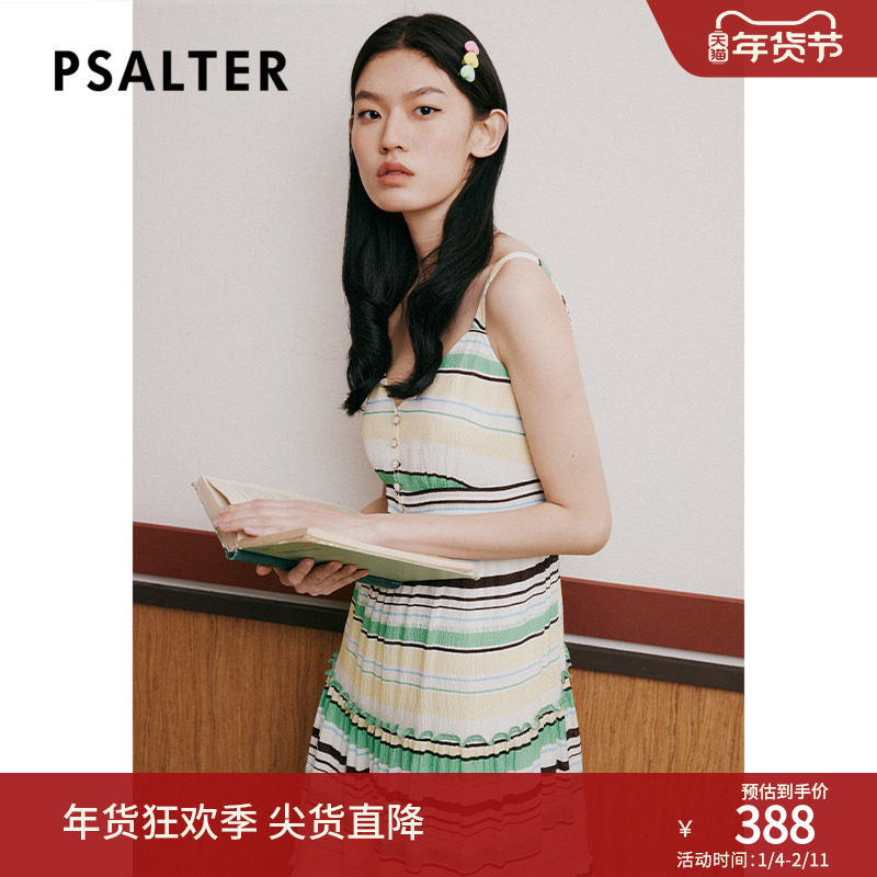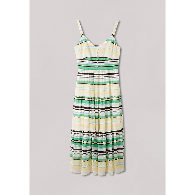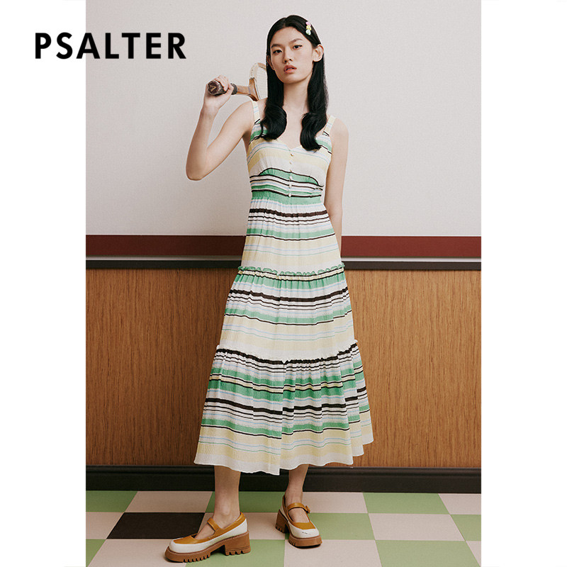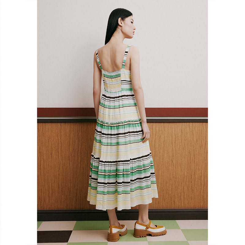 📚 诗篇夏撞色条纹真丝桑蚕丝吊带裙连衣裙