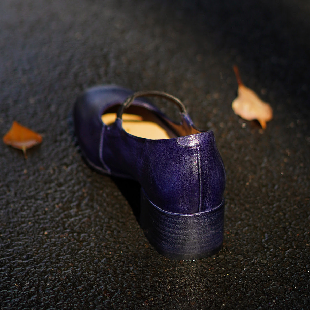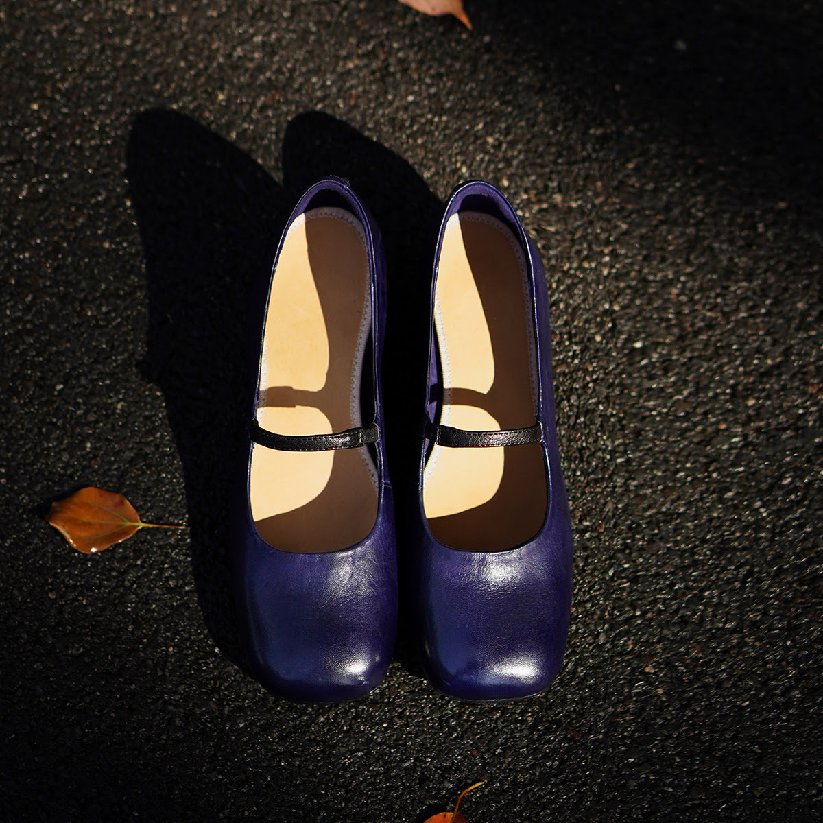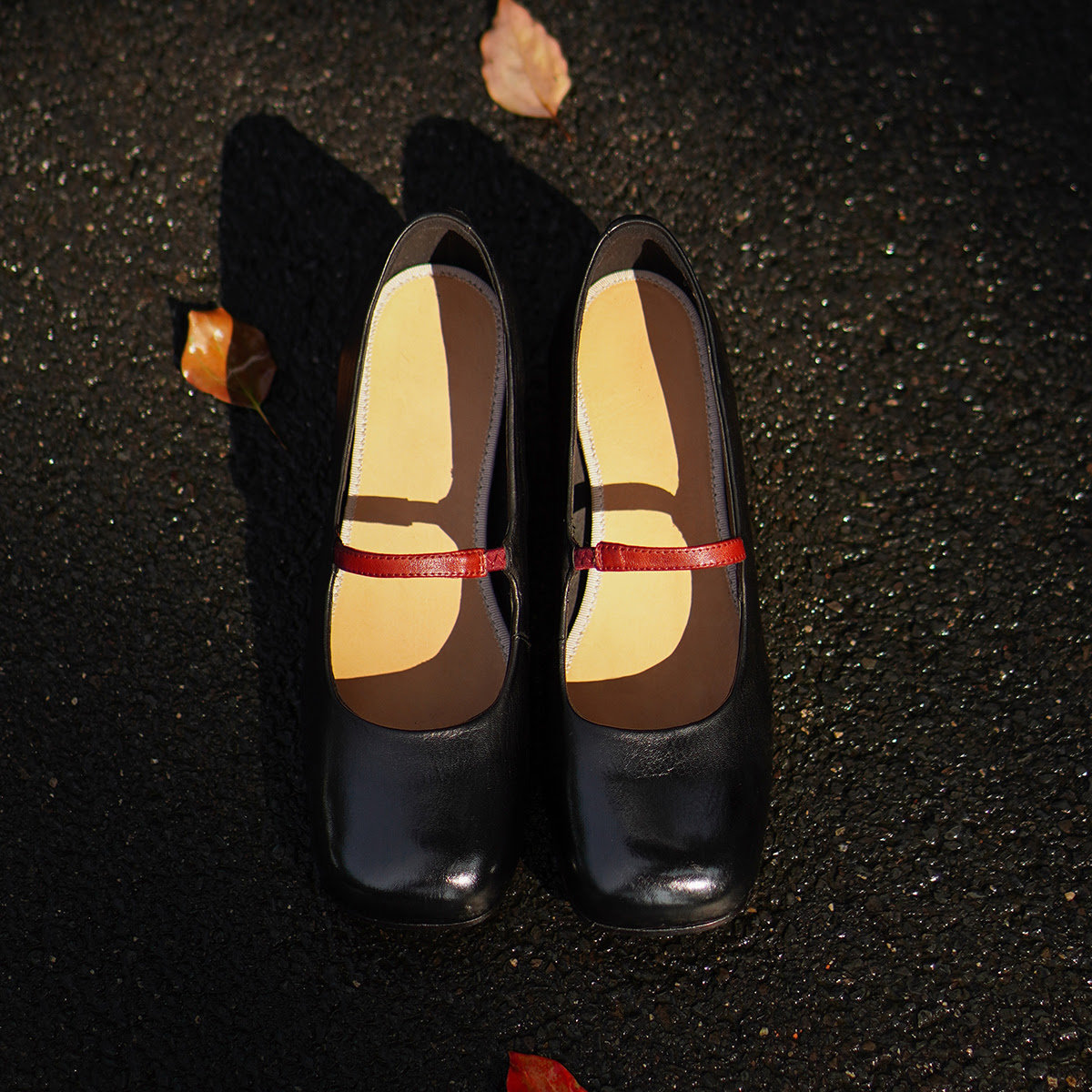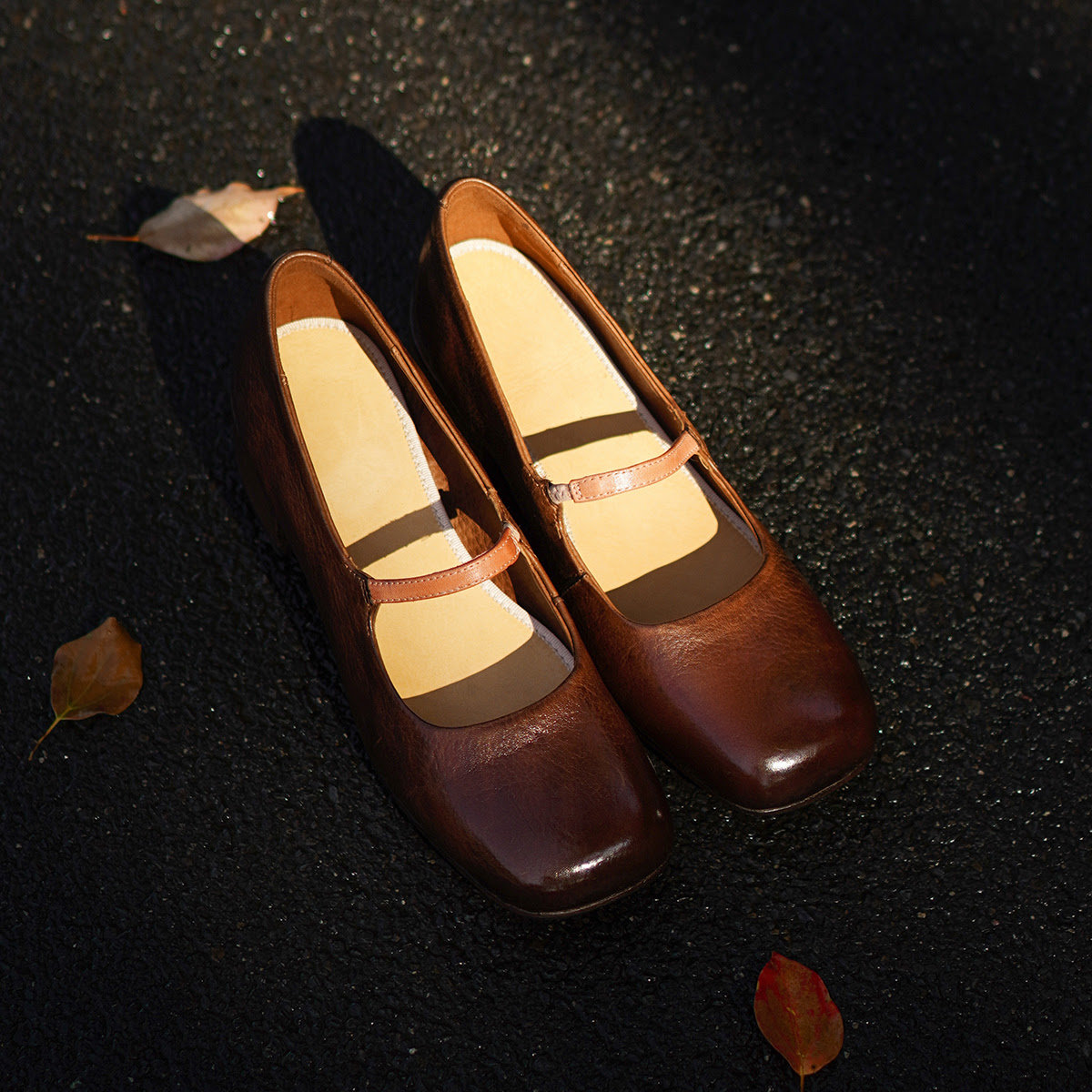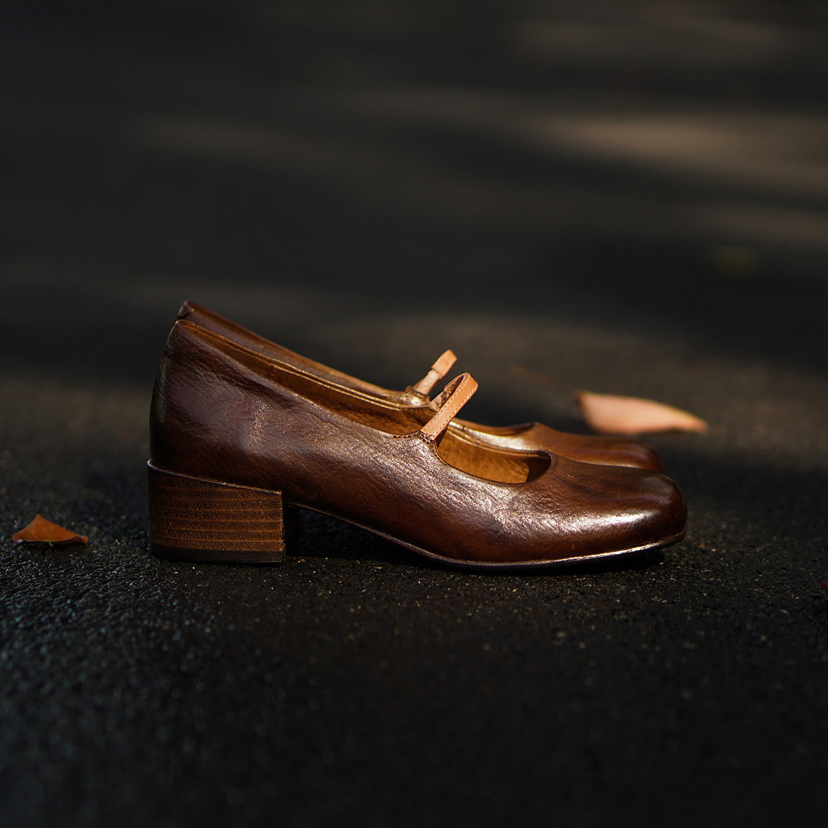 📚 水洗马皮法式复古方头气质玛丽珍鞋配裙子女士小皮鞋粗跟浅口单鞋