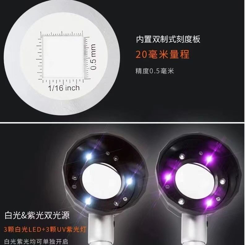 📚 放大镜鉴定专用邮票烟酒看紫砂壶扩大90倍邮票带灯刻度印刷手持式