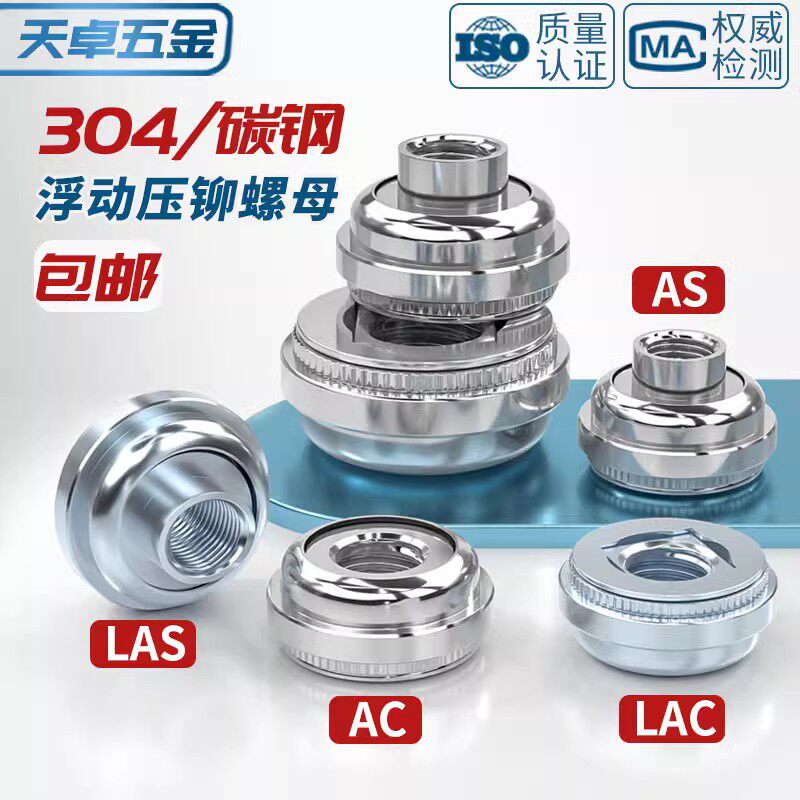 📚 304不锈钢/镀锌 浮动压铆螺母自锁扣锁紧调节螺丝帽AS LAS AC LAC