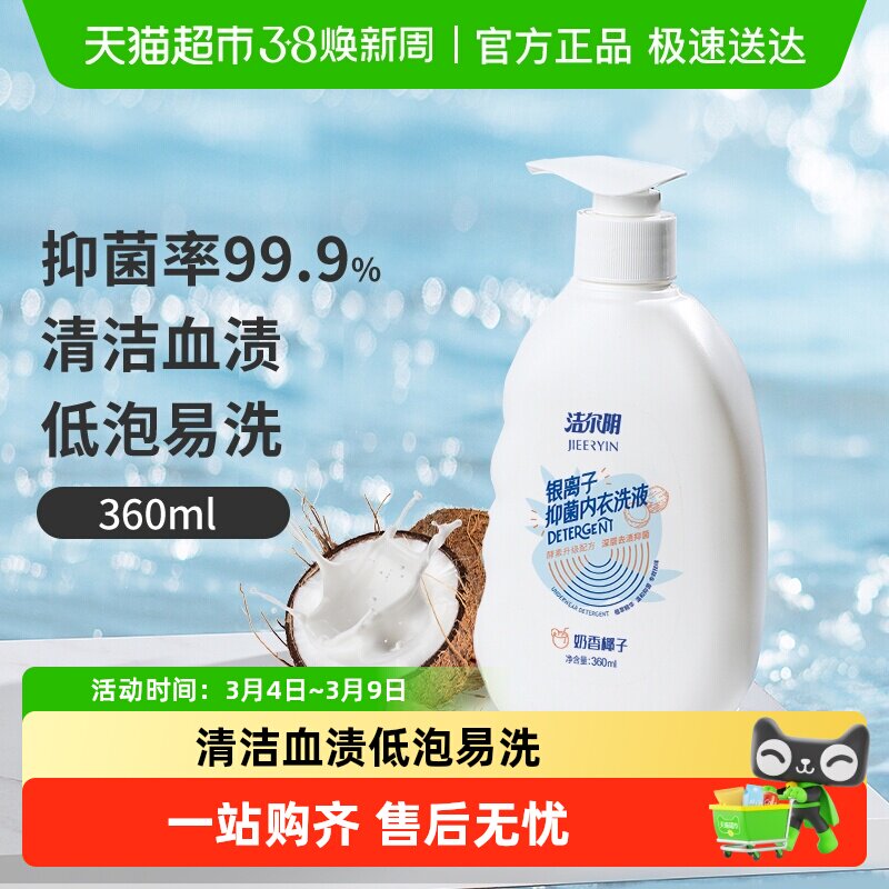 📚 洁尔阴内衣洗衣液内裤清洗液温和抑菌清洁去黄血渍内衣专用椰子味