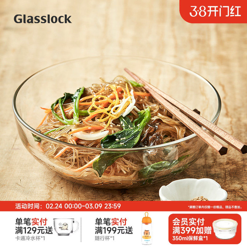 📚 Glasslock盖朗进口玻璃碗加厚水果沙拉碗透明碗家用大号汤碗泡面