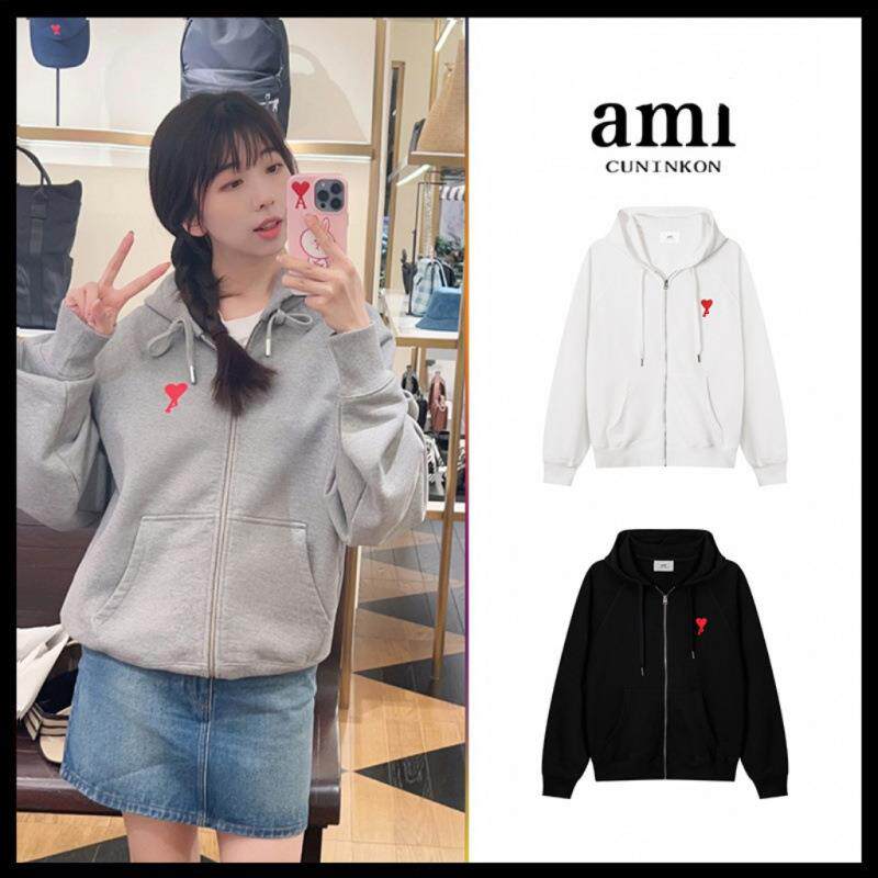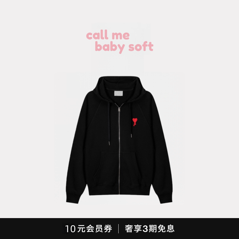 📚 ●callmebabysoft男女拉链连帽卫衣爱心刺绣休闲宽松棉质开衫外套