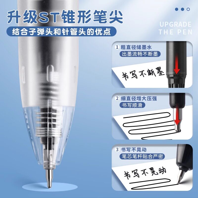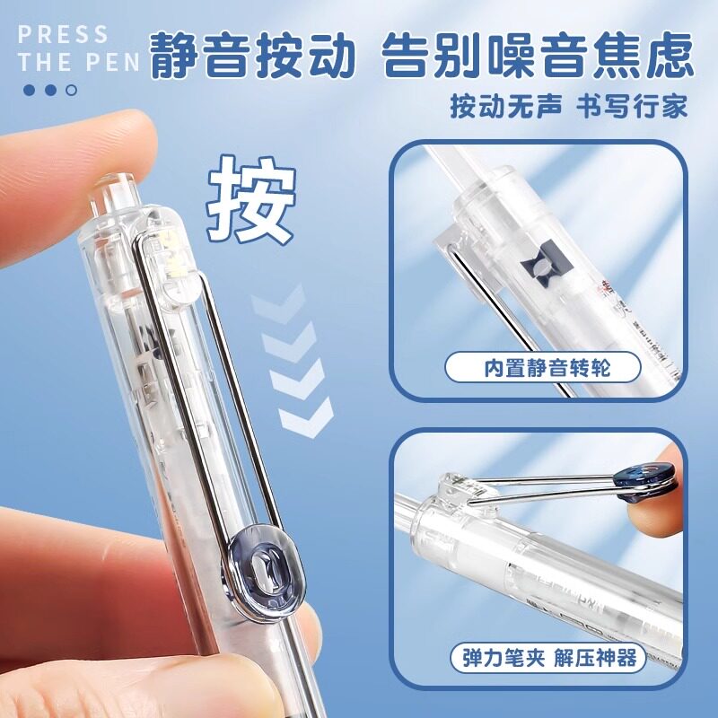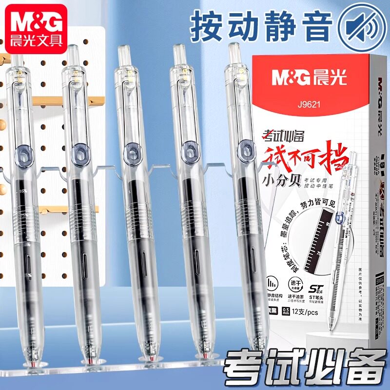 📚 晨光中性笔黑色速干签字笔学生考试专用透明笔杆0.5mmST尖头碳素黑按动式静音大容量刷题笔试不可挡AGPJ9621