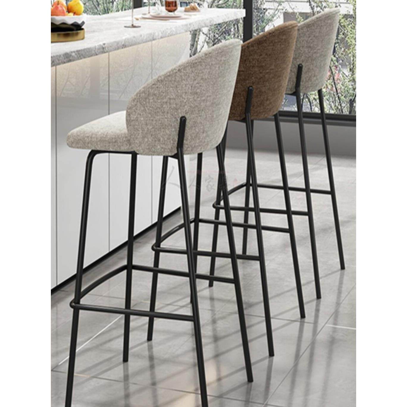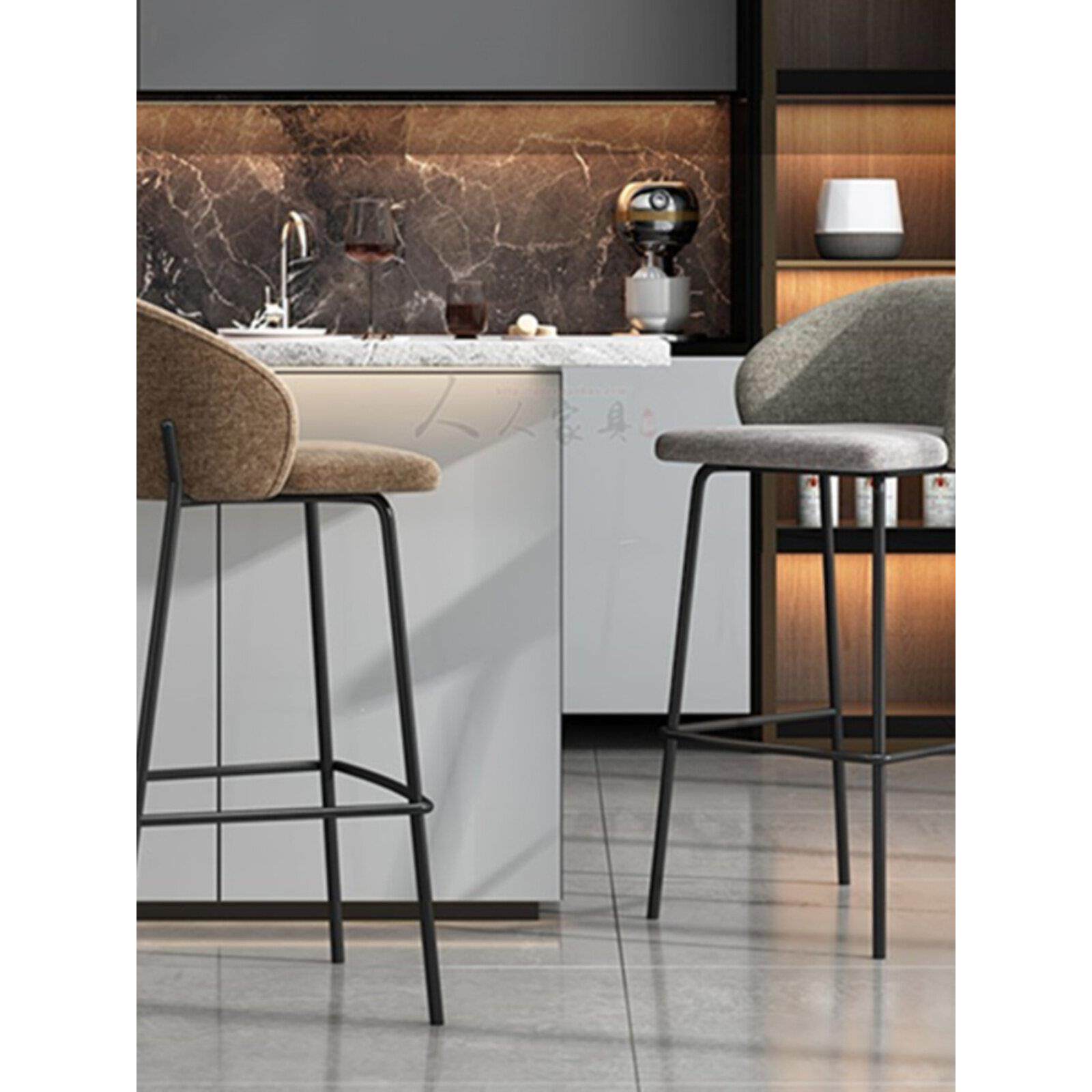 📚 北欧轻奢吧台椅家用现代简约前台高脚凳布艺吧台凳吧椅设计师款