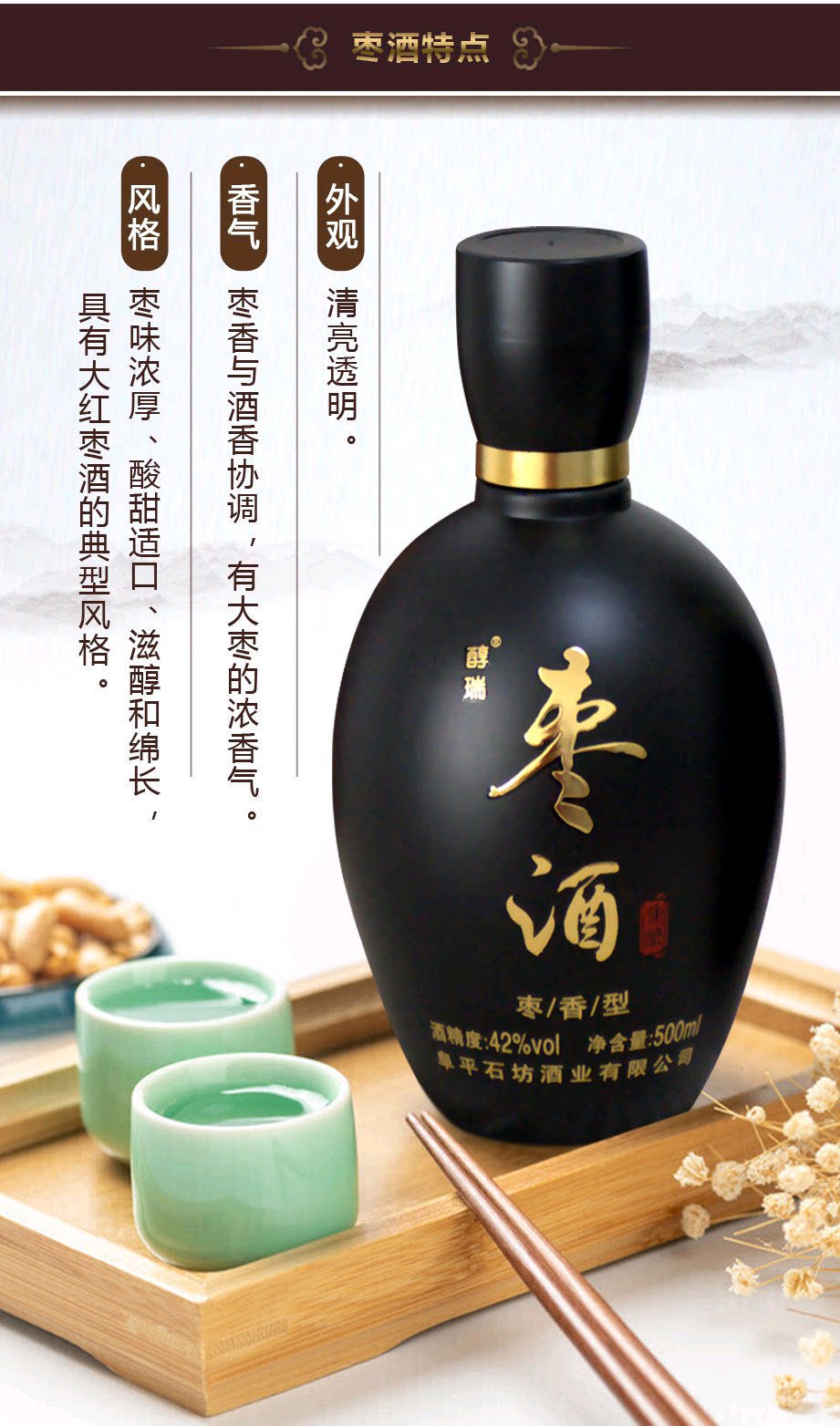 📚 阜平特产42度醇瑞枣杠子酒枣木杠酒红枣原浆酒礼盒装500mlx2瓶