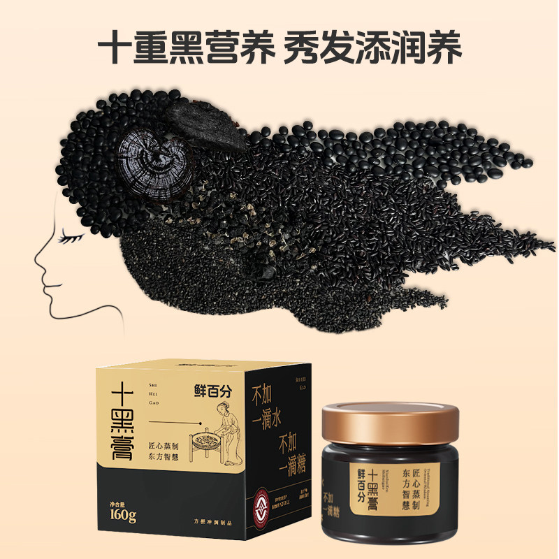 📚 十黑膏五黑喜滋养白发掉纯黑芝麻黄精灵芝枸杞桑葚滋补男女中老年
