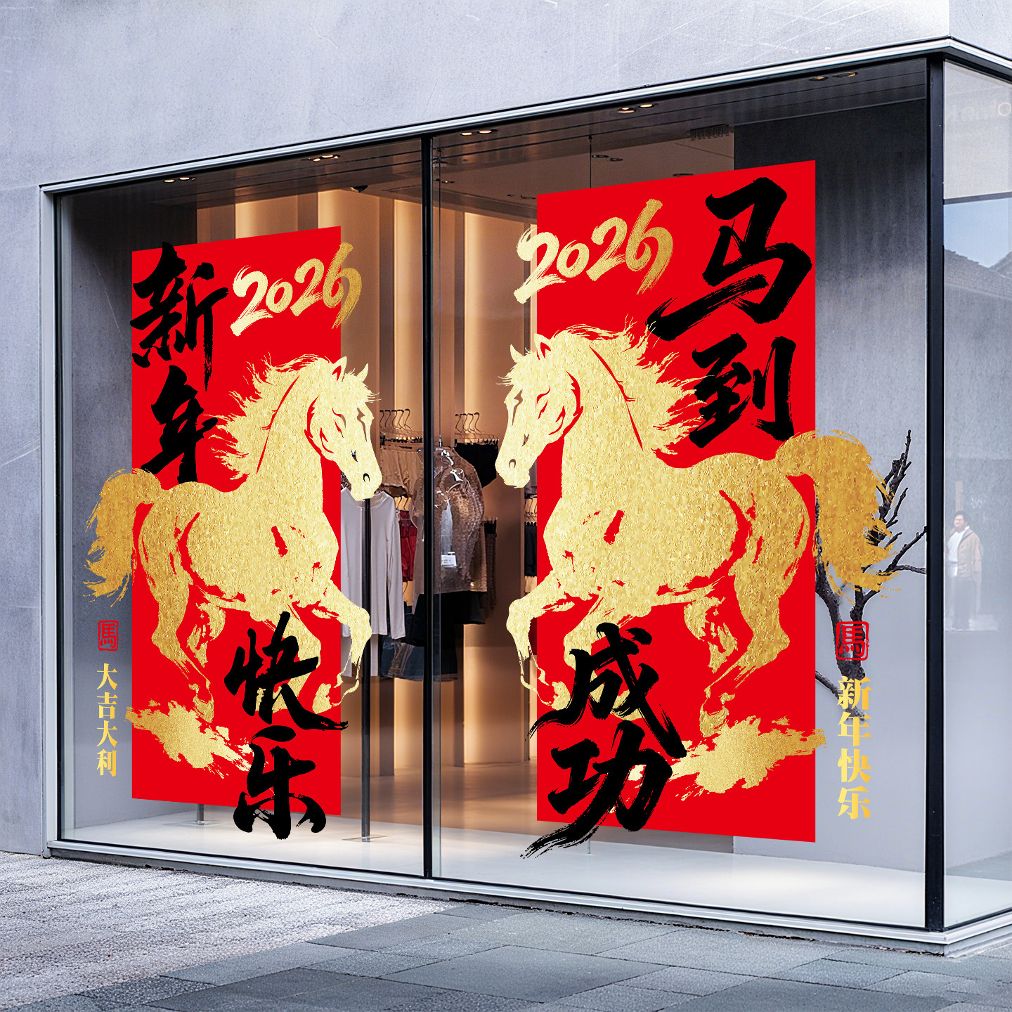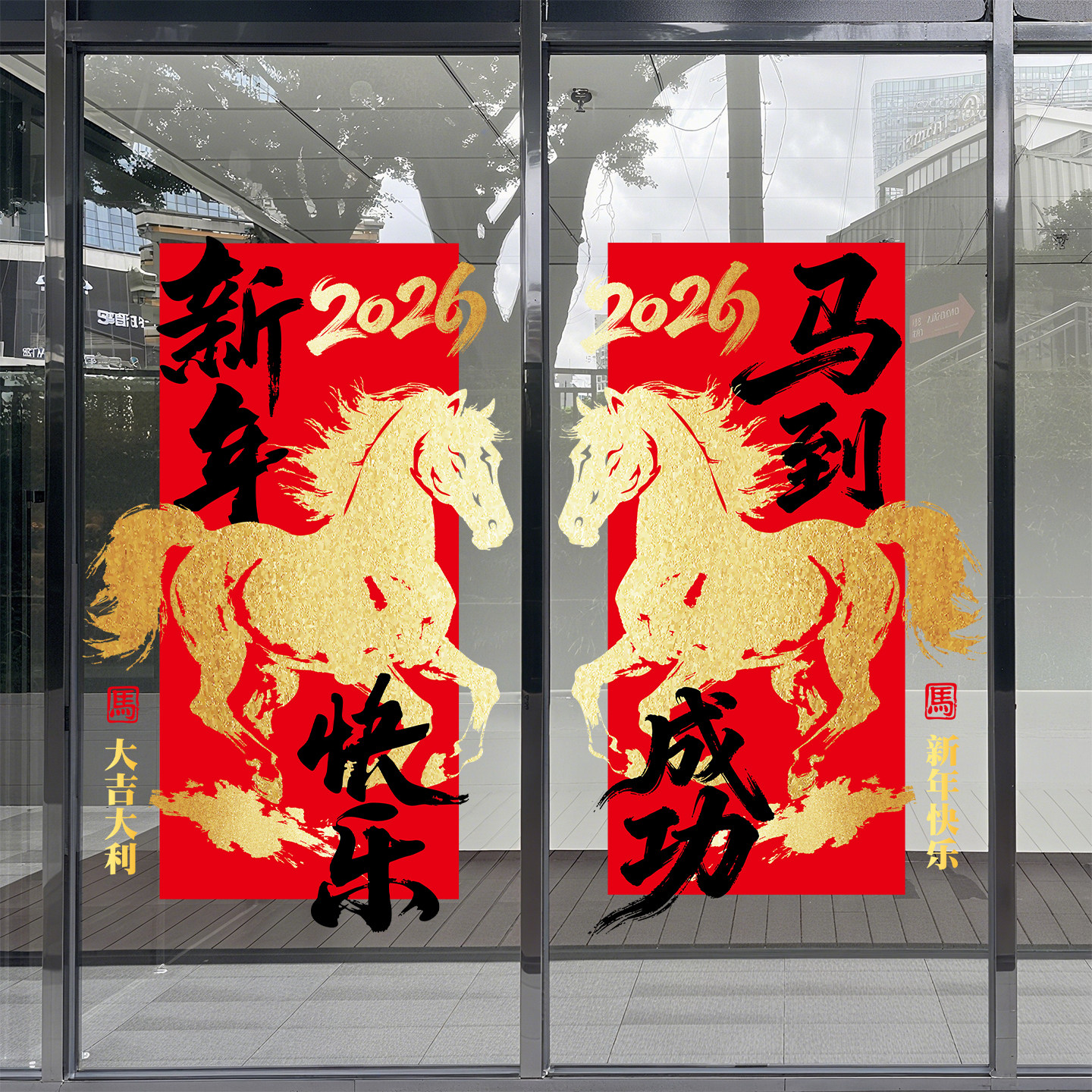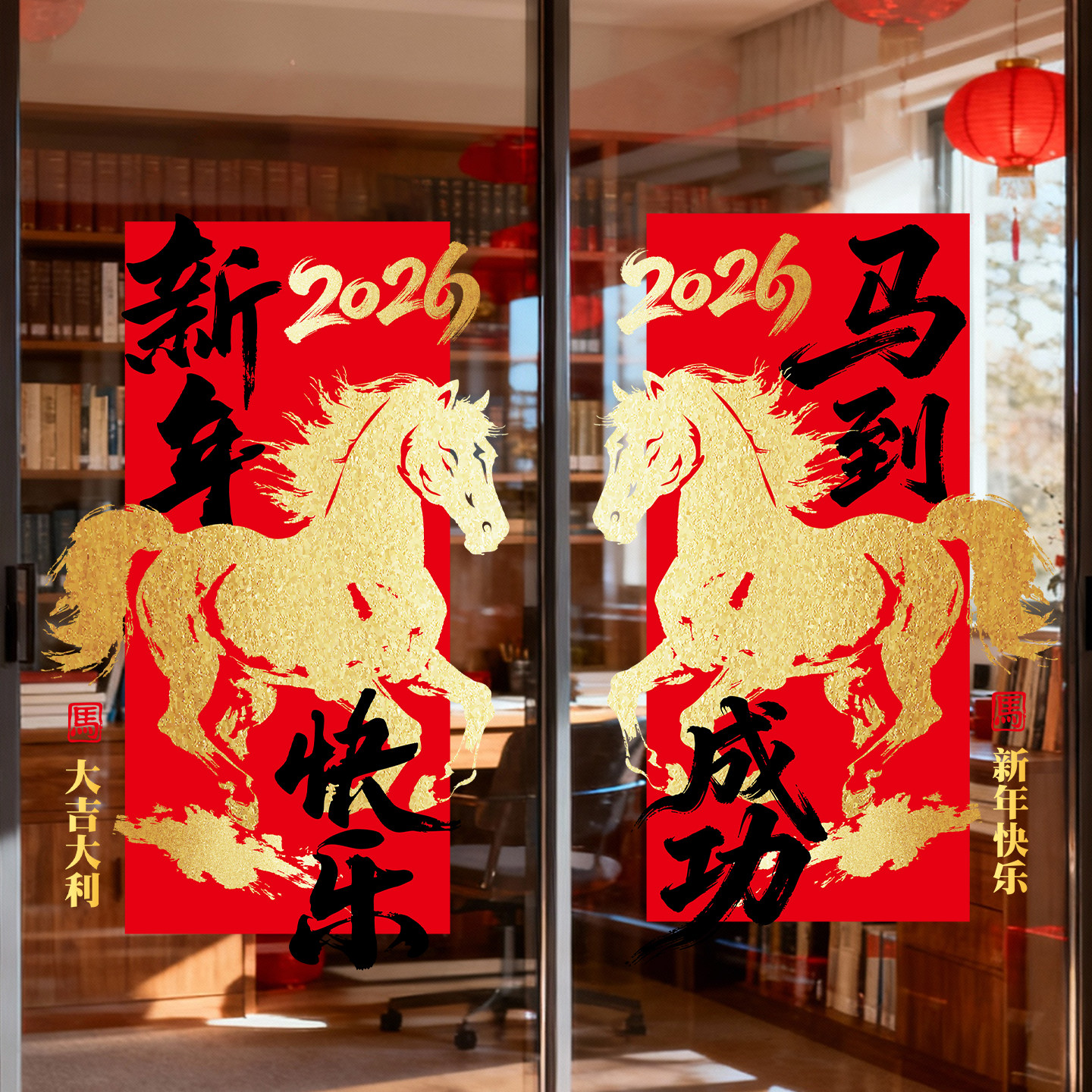 📚 公司大门对联春联2026年新款窗贴马年玻璃贴窗花过新年装饰静电贴