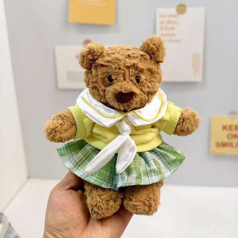 📚 仅售娃衣】16cm巴塞罗熊着替毛绒玩偶小熊翻领衫格子裙泰迪熊娃衣