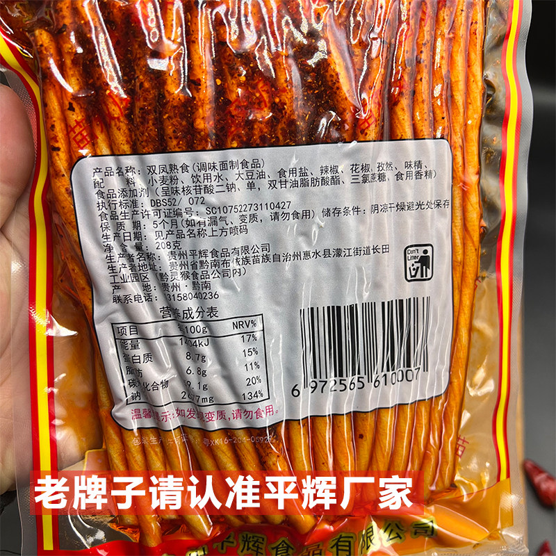 📚 味源苗双凤熟食贵州特产辣条牛板筋208g素面筋童年麻辣小吃零食
