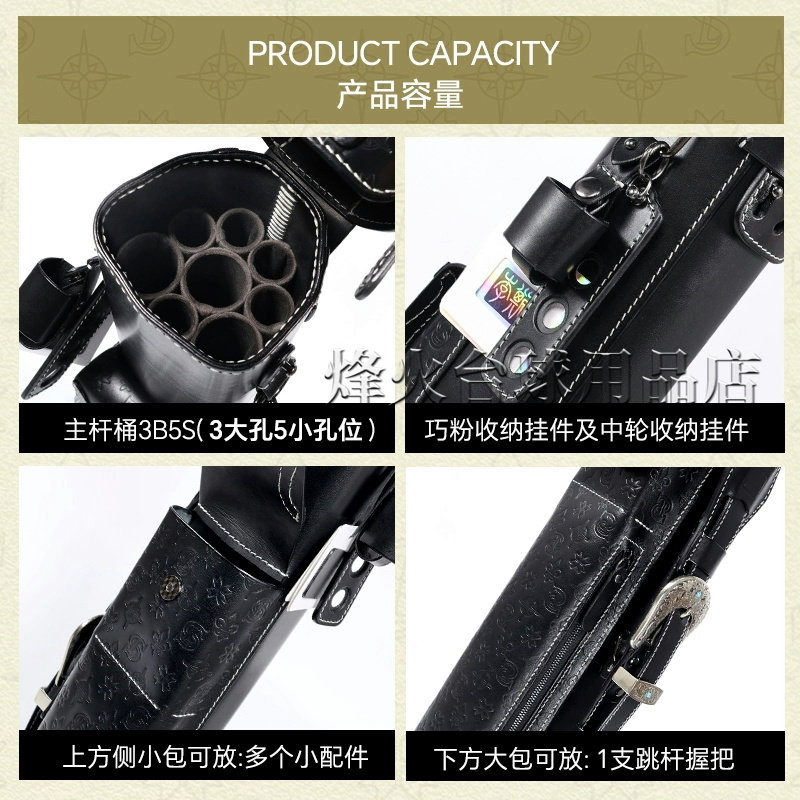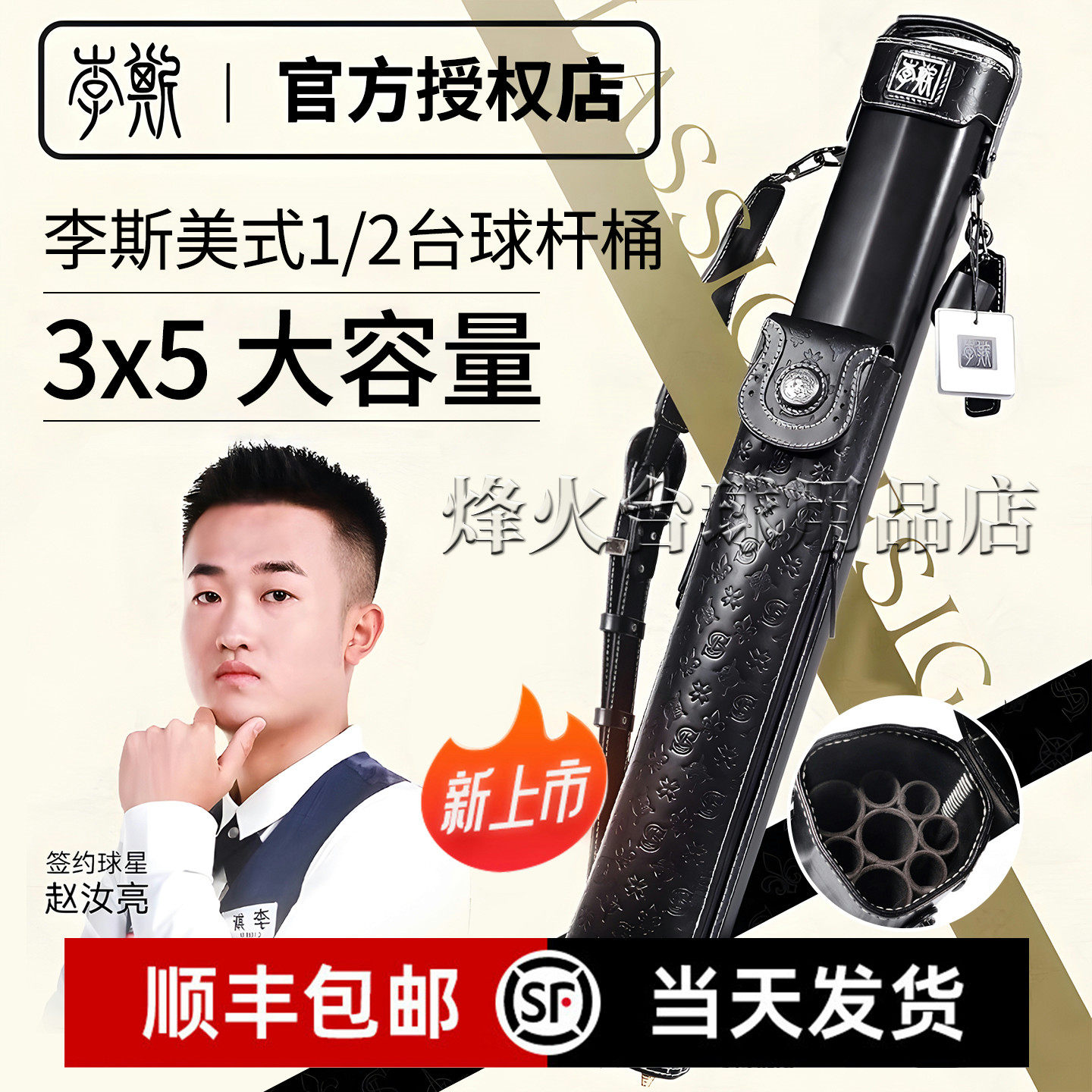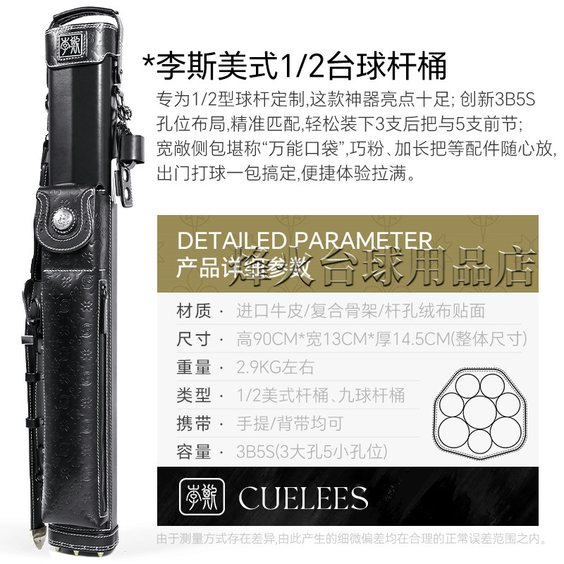 📚 李斯台球杆美式九球大头杆牛皮8孔杆桶二分之一台球杆收纳杆包