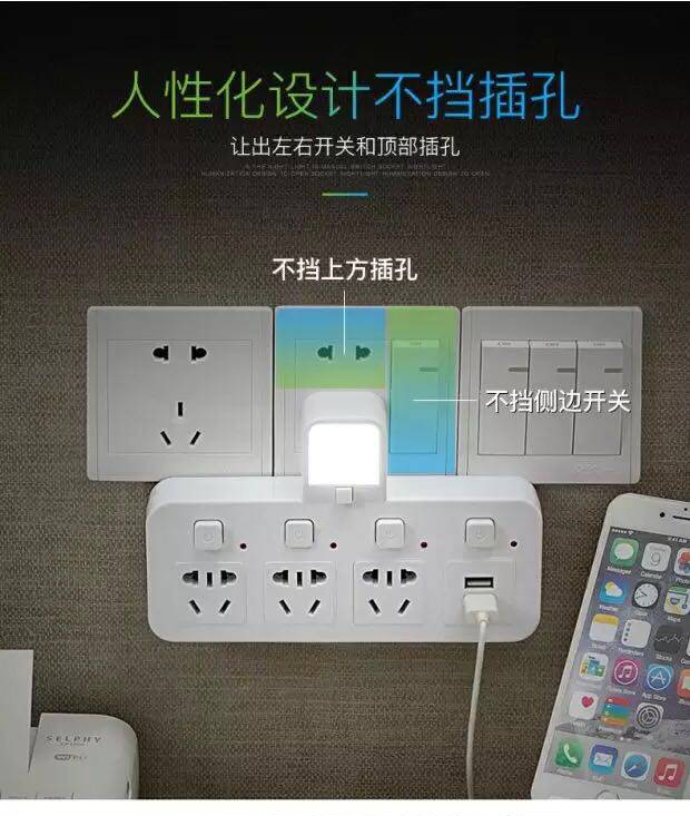 📚 排插贴心夜灯一转3孔插板插座转换器不挡开关多功能转换器