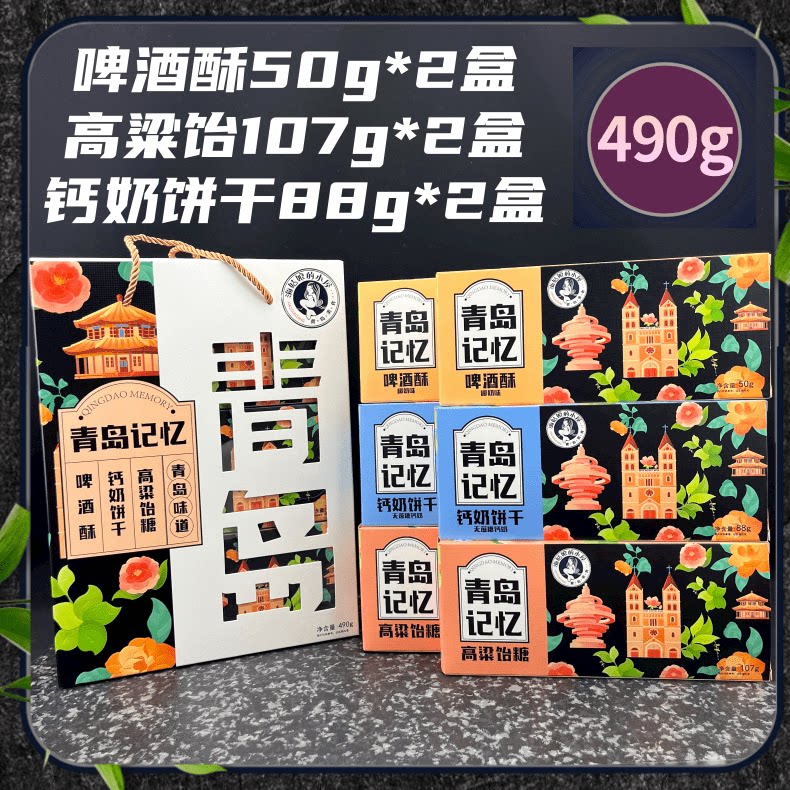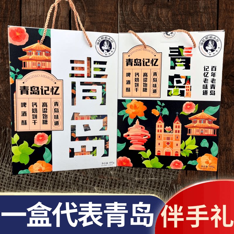 📚 青岛记忆特产食品点心组合啤酒酥高粱饴钙奶饼干会议伴手礼品盒
