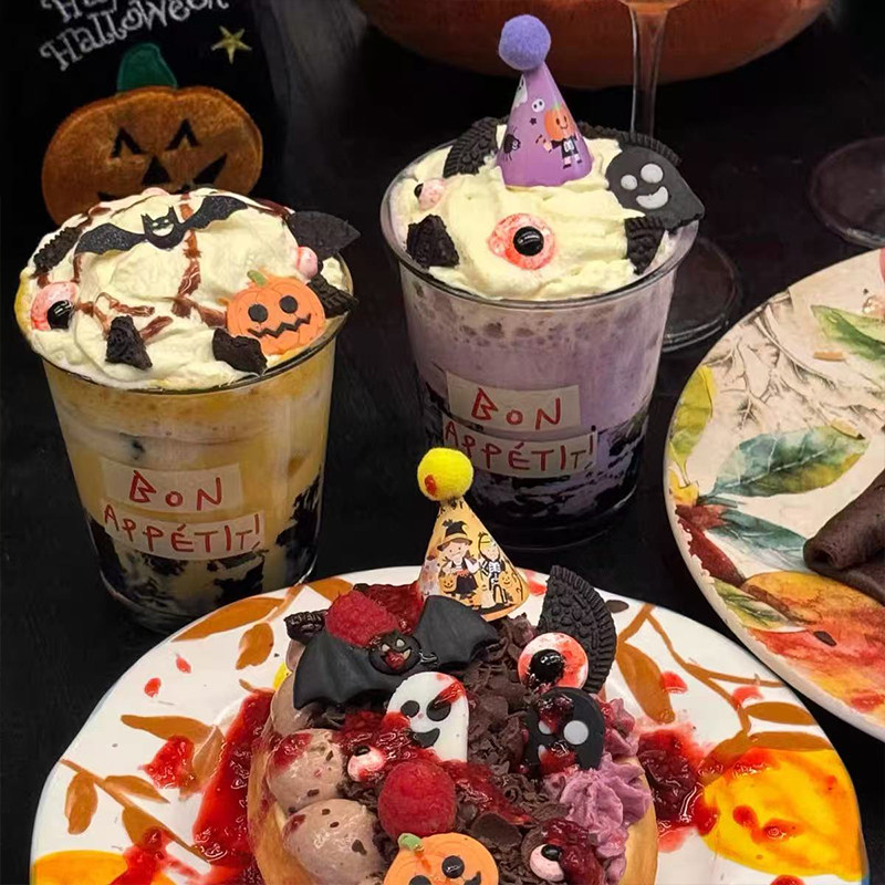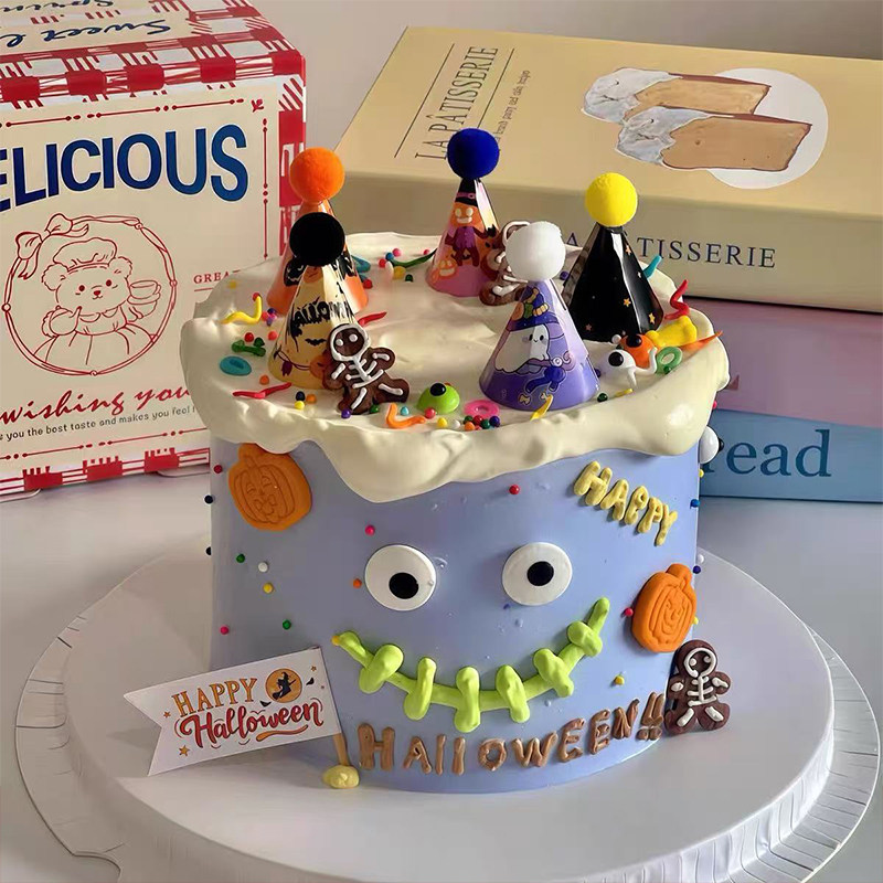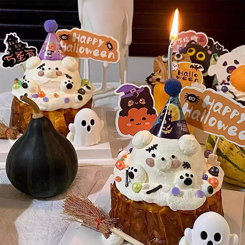 📚 2025万圣节迷你成品帽蛋糕装饰创意眼珠糖万圣快乐小旗装扮插件
