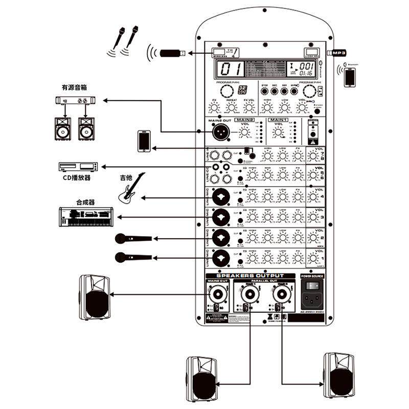 📚 15寸有源音箱专业演出扩展话筒效果调音台功放音箱移动户外大功率