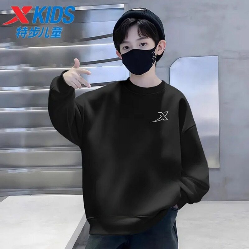 📚 特步儿童卫衣童装春秋季男童圆领长袖衫宽松女童套头衫中大童上衣