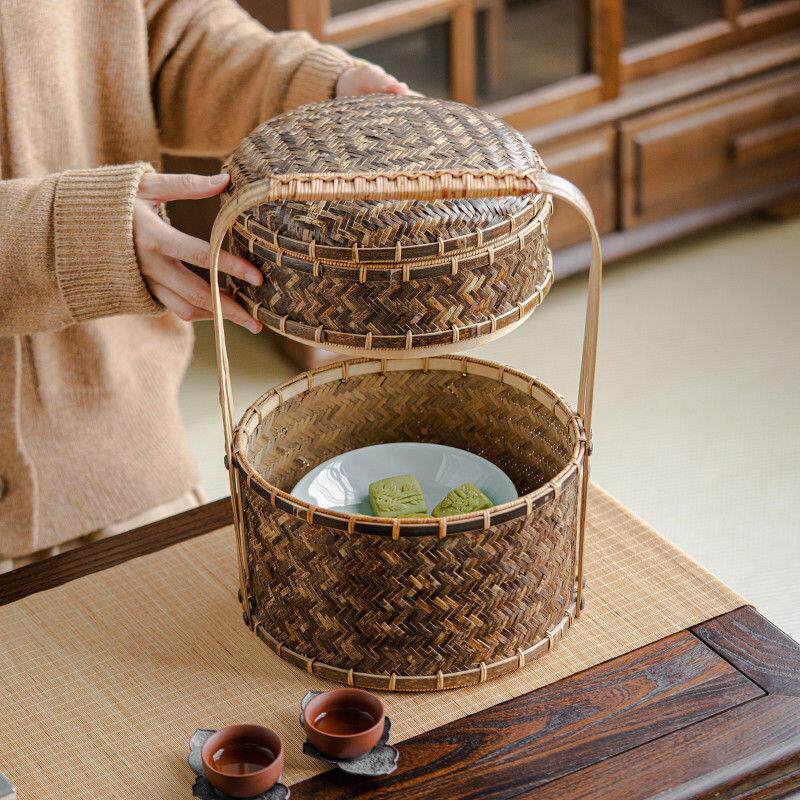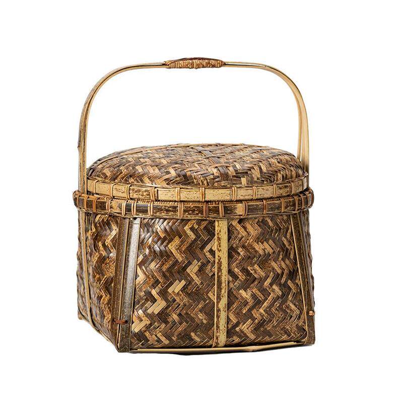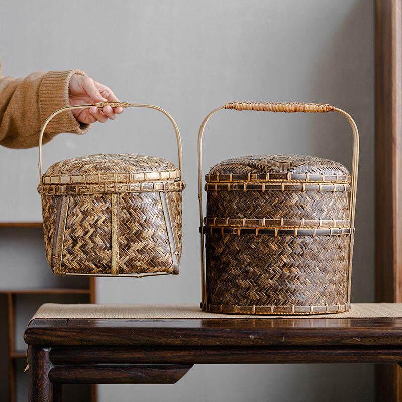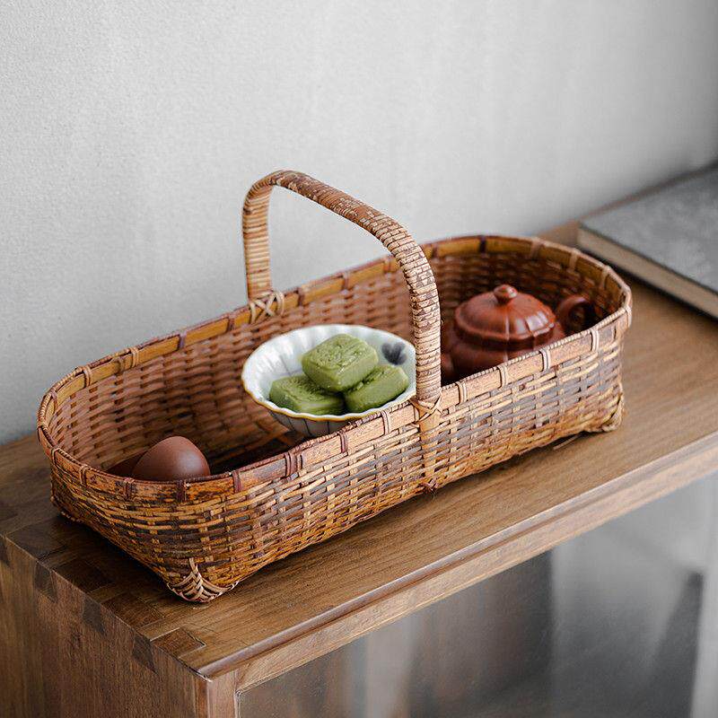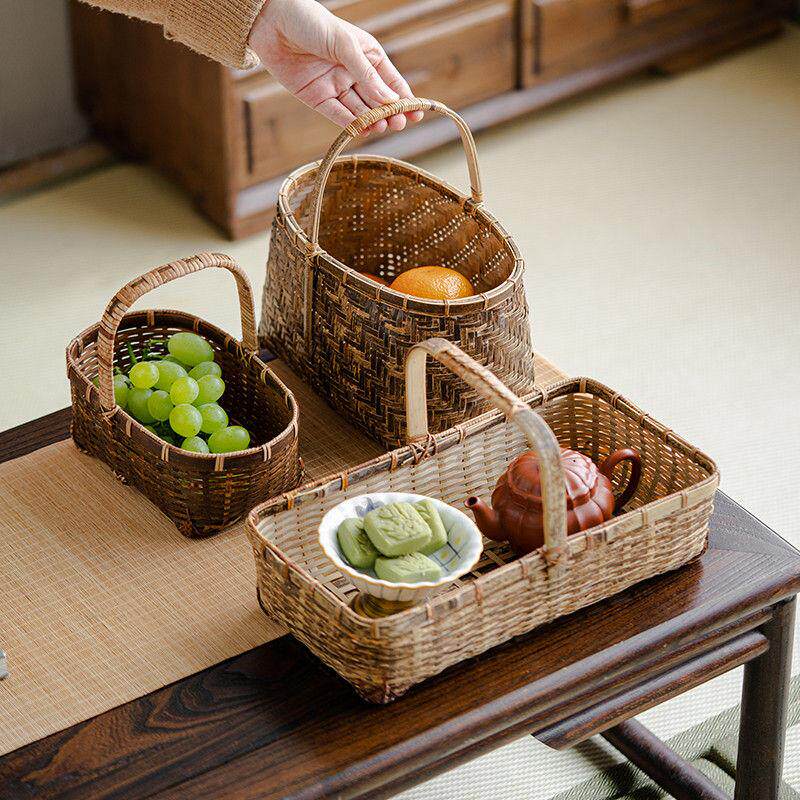 📚 手工老式竹编篮子收纳筐古风小提篮紫竹茶具篮竹筐零食水果收纳筐
