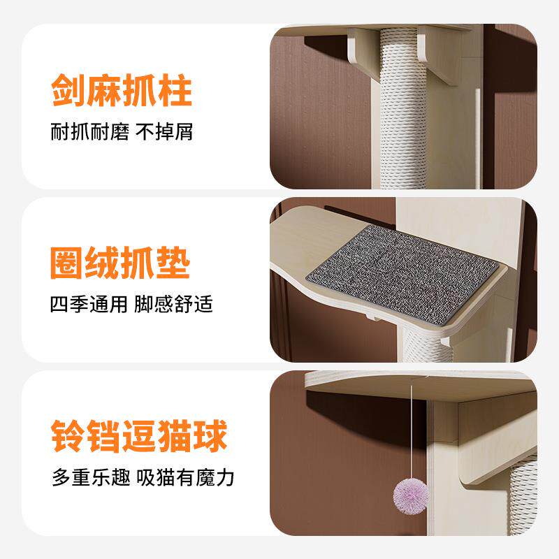 📚 实木挂门猫爬架猫咪一体猫爬柱不占地多格猫跳台猫玩具宠物猫抓板