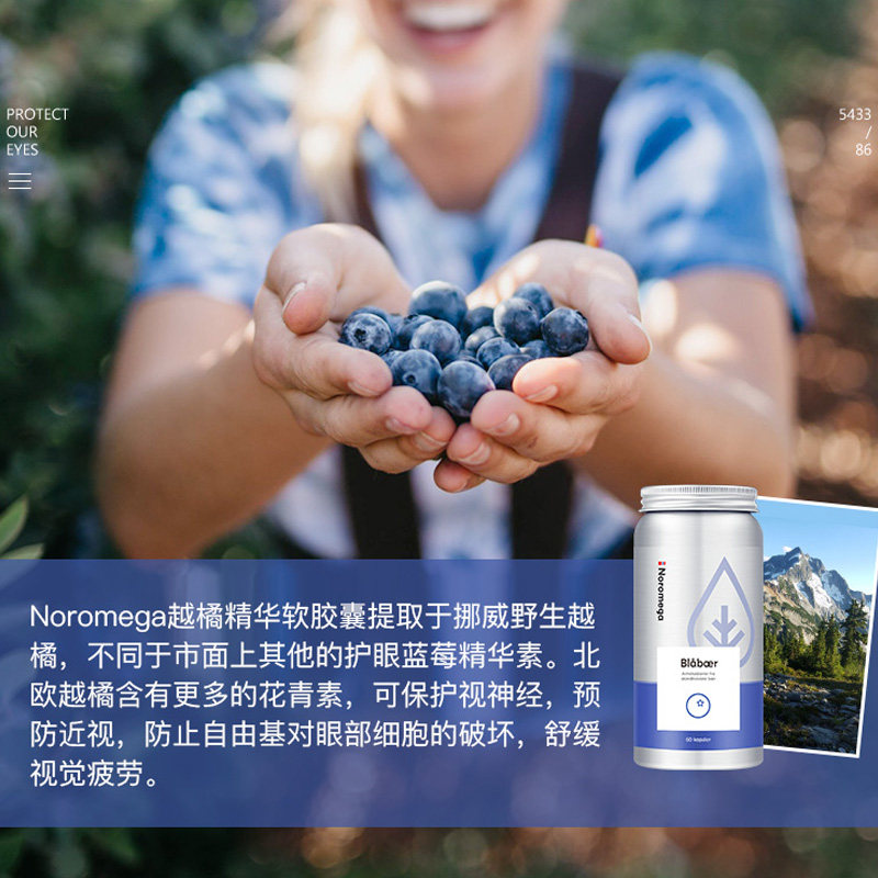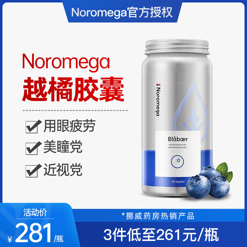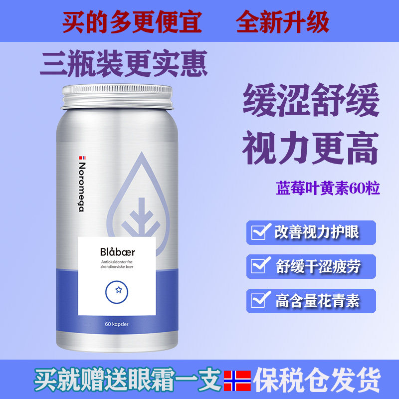 📚 挪威Noromega越橘精华蓝莓素60粒花青素成人儿童视力保护包邮特价