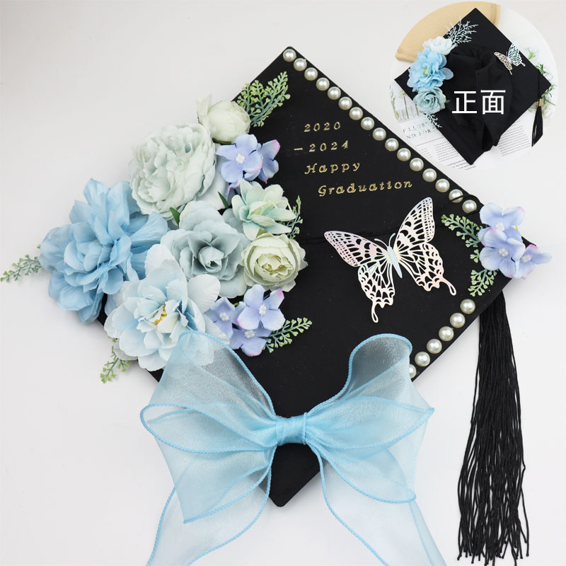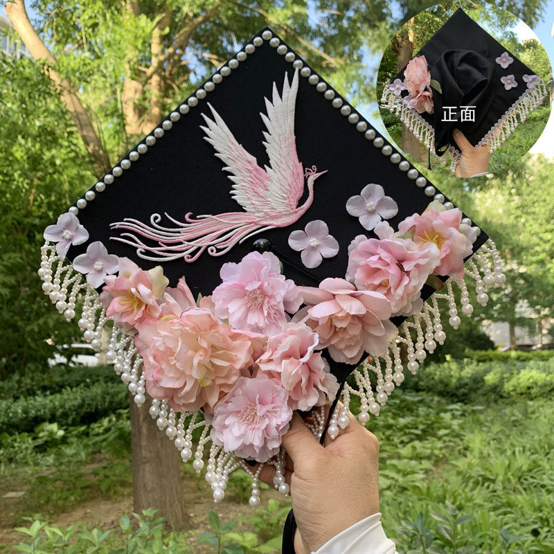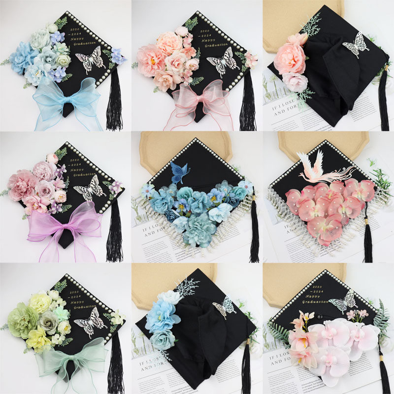 📚 学士帽手工diy材料包簪花装饰毕业帽拍照字母贴纸仿真花绢花硕士