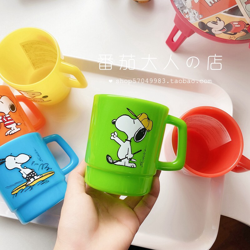 📚 现货日本带回史努比彩色树脂把手水杯 儿童成人可用 日本制