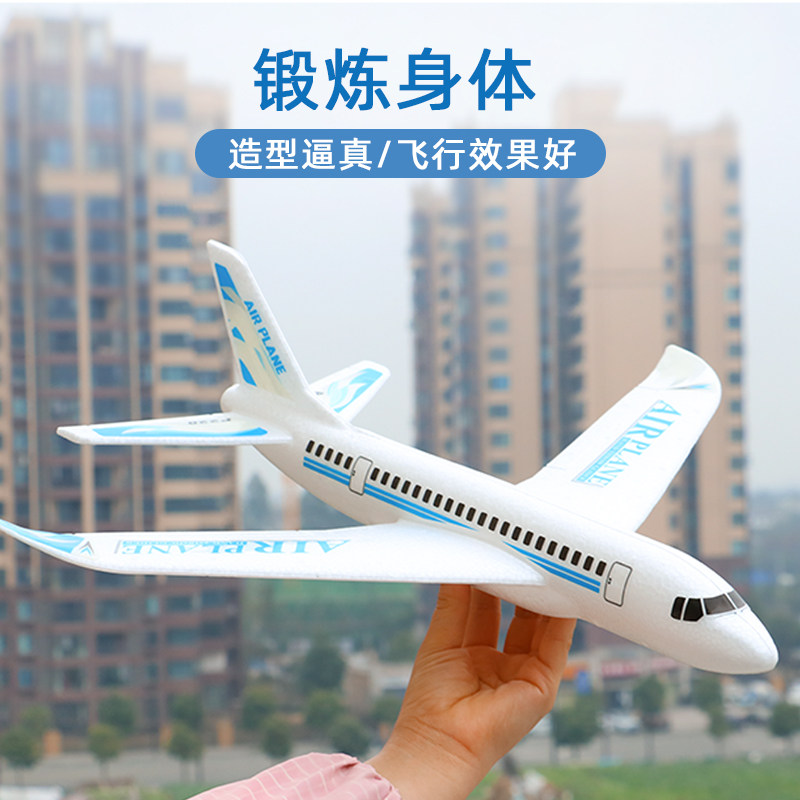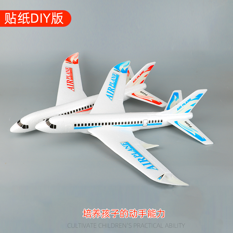 📚 网红户外玩具泡沫飞机手抛儿童模型滑翔机航模拼装客机回旋发光
