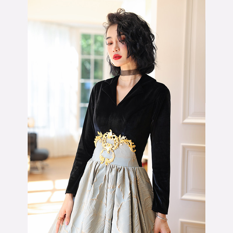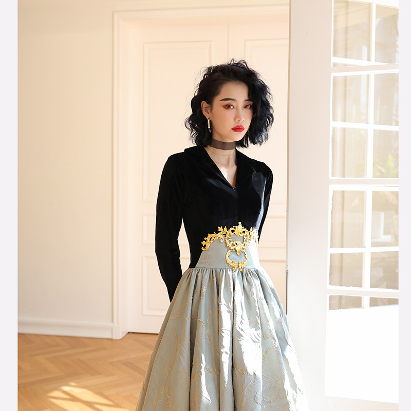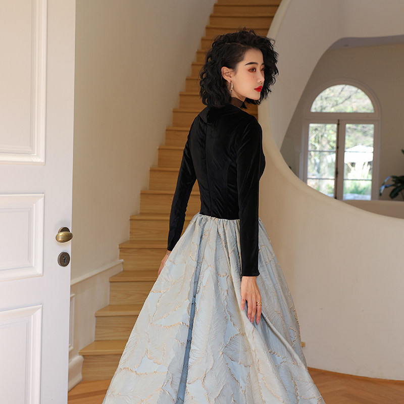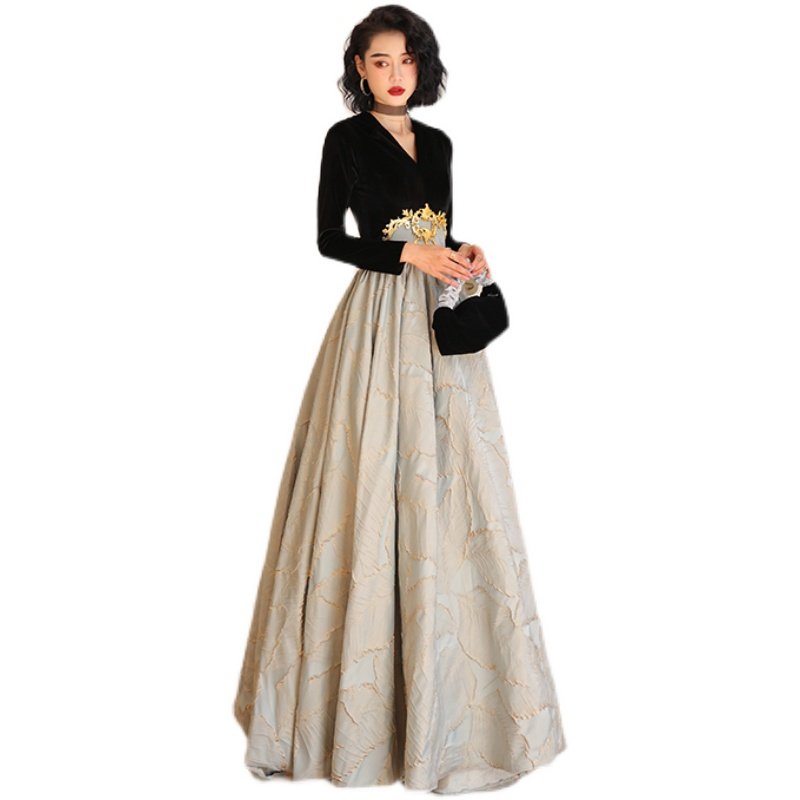 📚 主持人礼服女高端大气艺考黑色长款2025新款秋冬季宴会演出晚礼服
