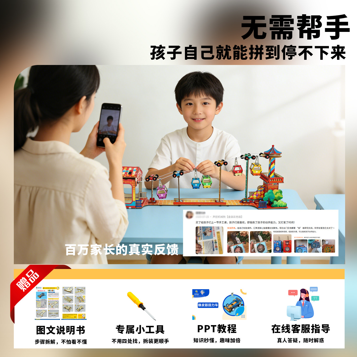 📚 缆车索道玩具儿童节礼物diy缆车模型电梯玩具科技小制作手工探梦
