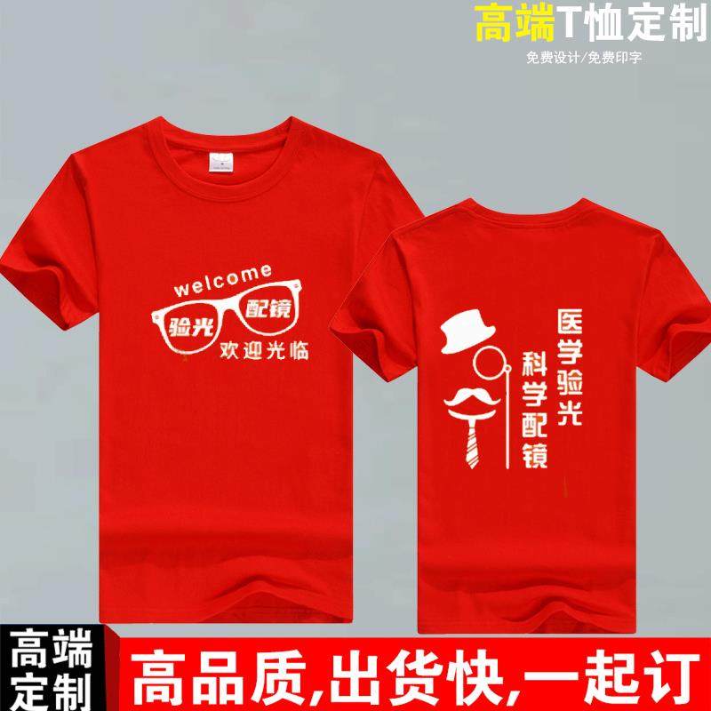 📚 眼镜店服务员圆领短袖可定制配镜验光师广告团队宣传纯棉T恤印字