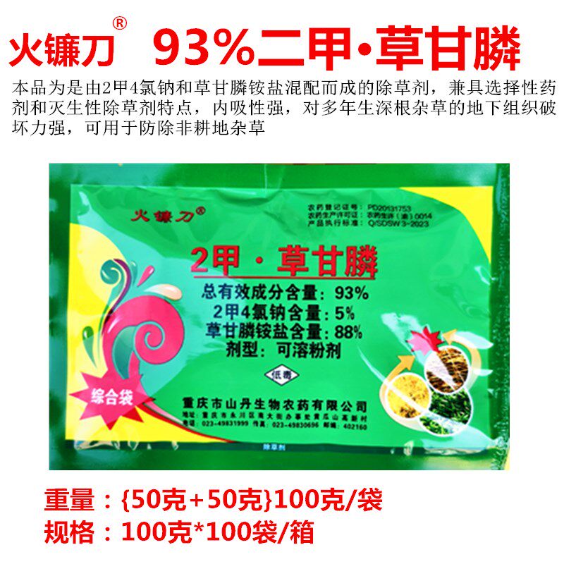 📚 火镰刀93%2甲·草甘膦二甲草甘膦荒山马路非耕地杂草除草剂