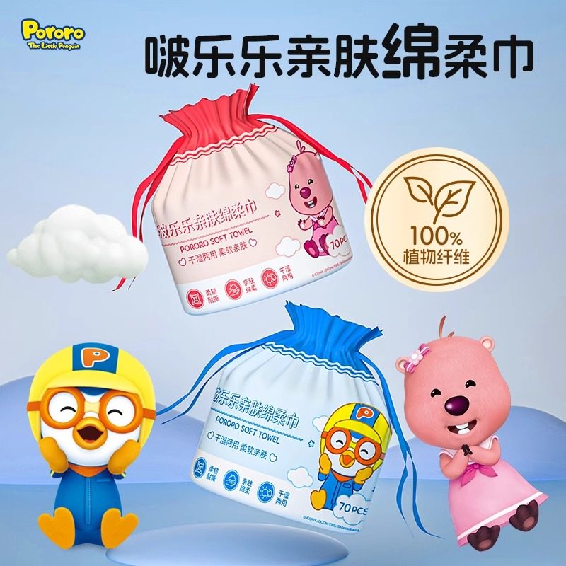 📚 啵乐乐儿童绵柔巾婴儿宝宝干湿两用湿柔纸巾洗脸巾手口屁专用70抽