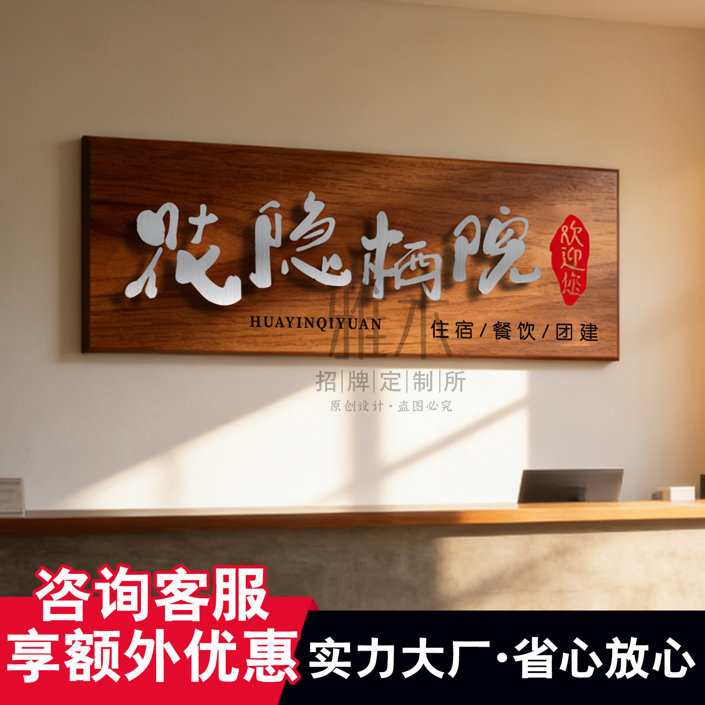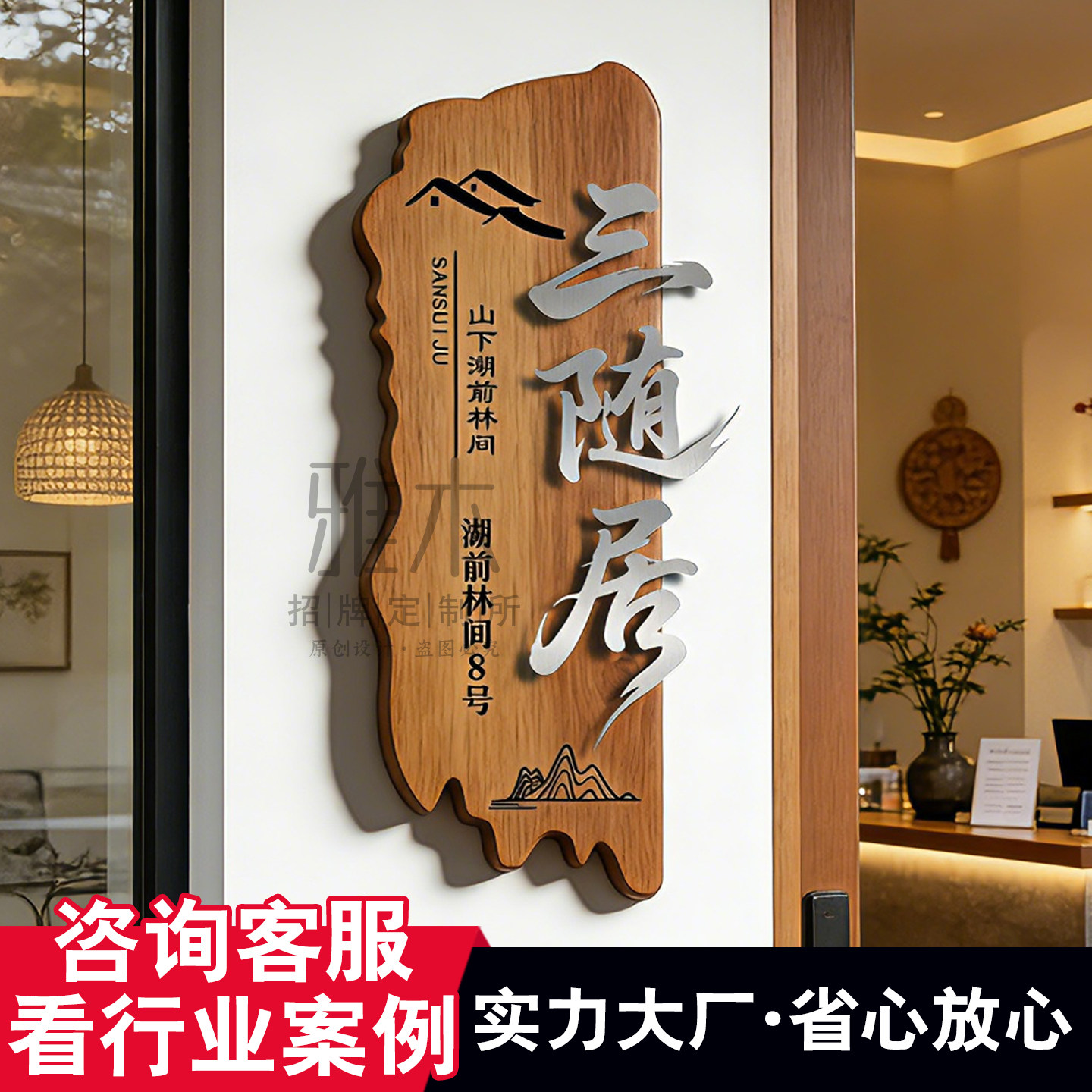 实木悬浮广告牌门牌定做