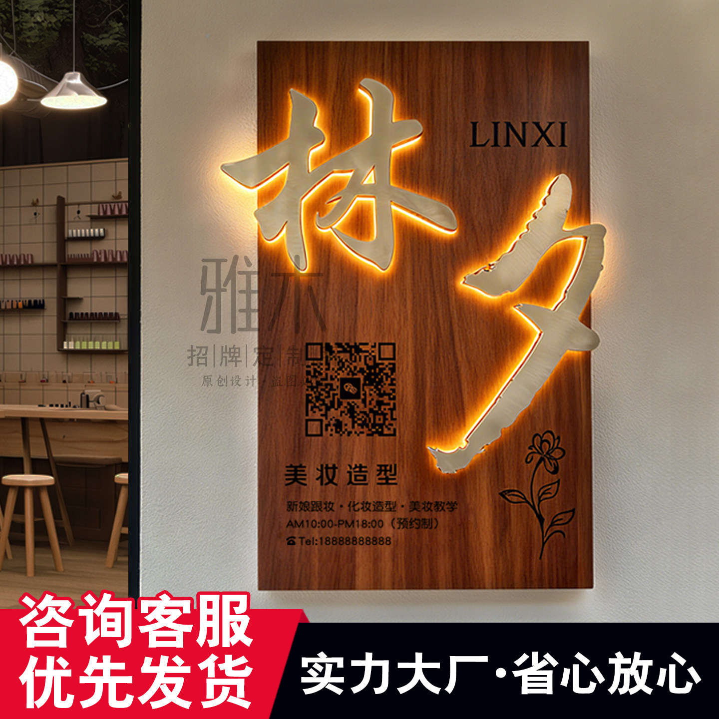 🔥揭秘神秘工作室:实木发光门牌定制,高级悬浮字招牌大放异彩💥