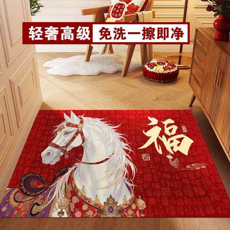 📚 2026年马年大吉红底白马福字入户地垫玄关地垫防水防滑皮革地垫