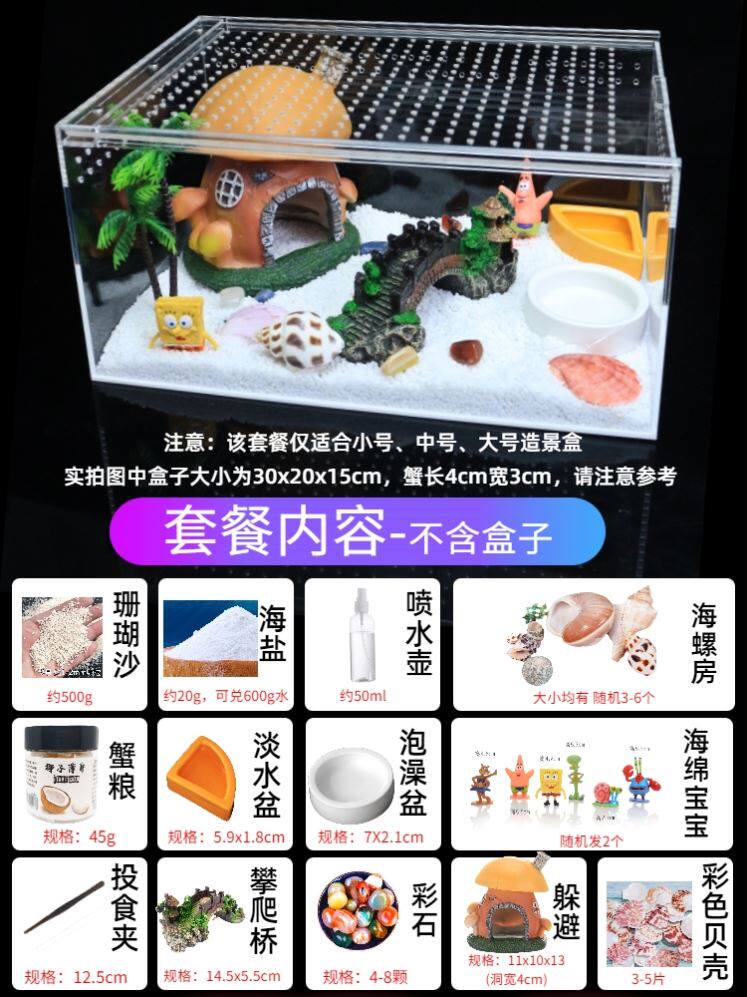 📚 寄居蟹生态缸饲养箱套装套餐压克力饲养盒沙蟹饲养缸造景全套缸箱