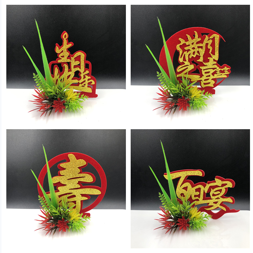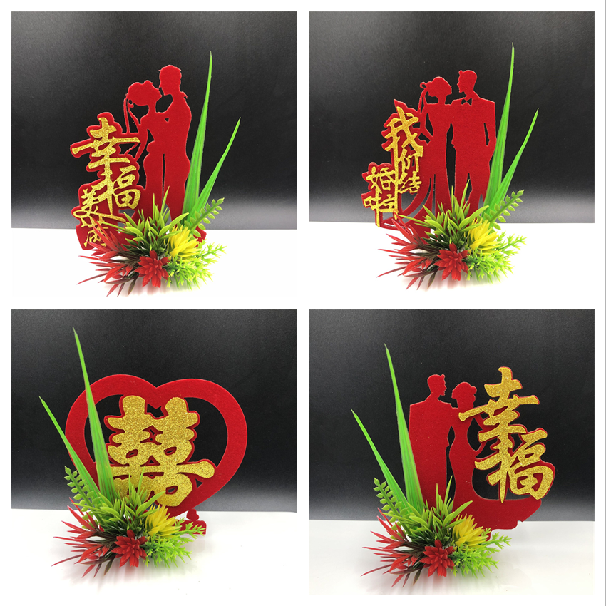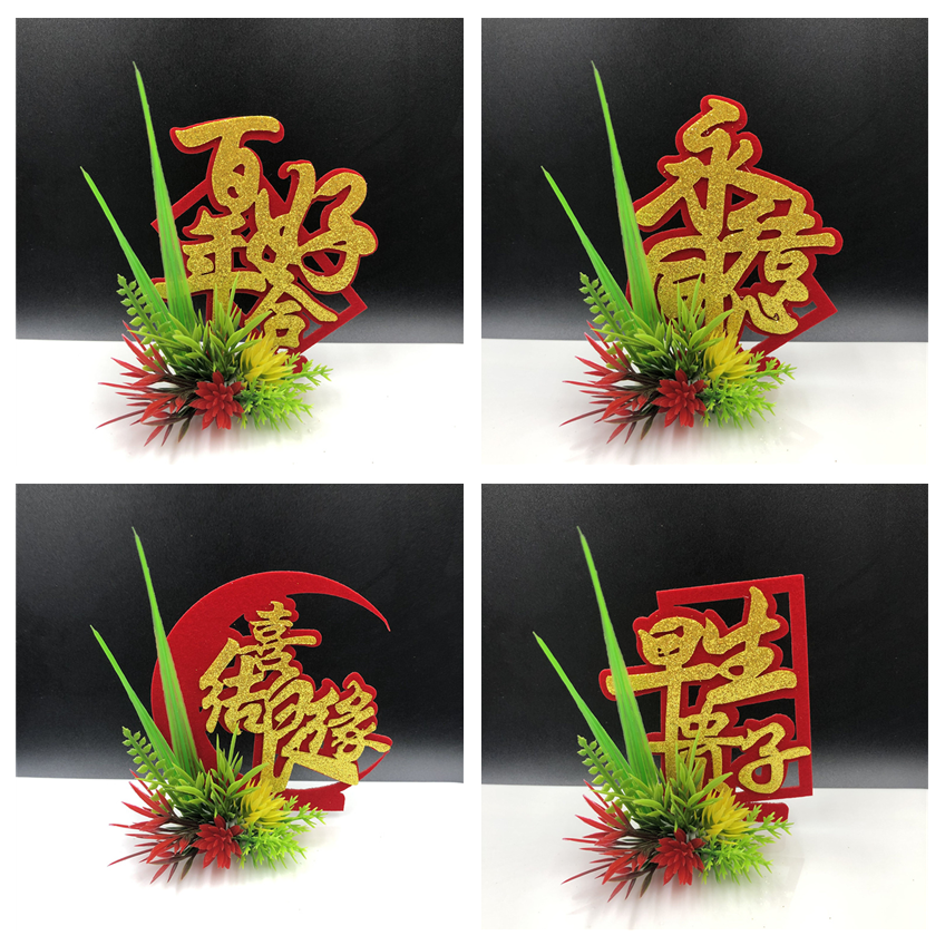 📚 结婚宴生日寿宴乔迁满月酒席酒店仿真花盆饰盐雕喜字摆盆蛋糕装饰