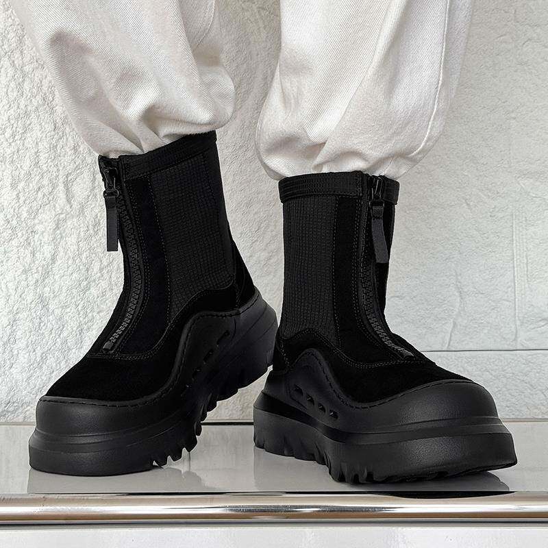 📚 【老派轻奢】黑色厚底马丁靴2025新款情侣高帮拉链厚底增高户外靴