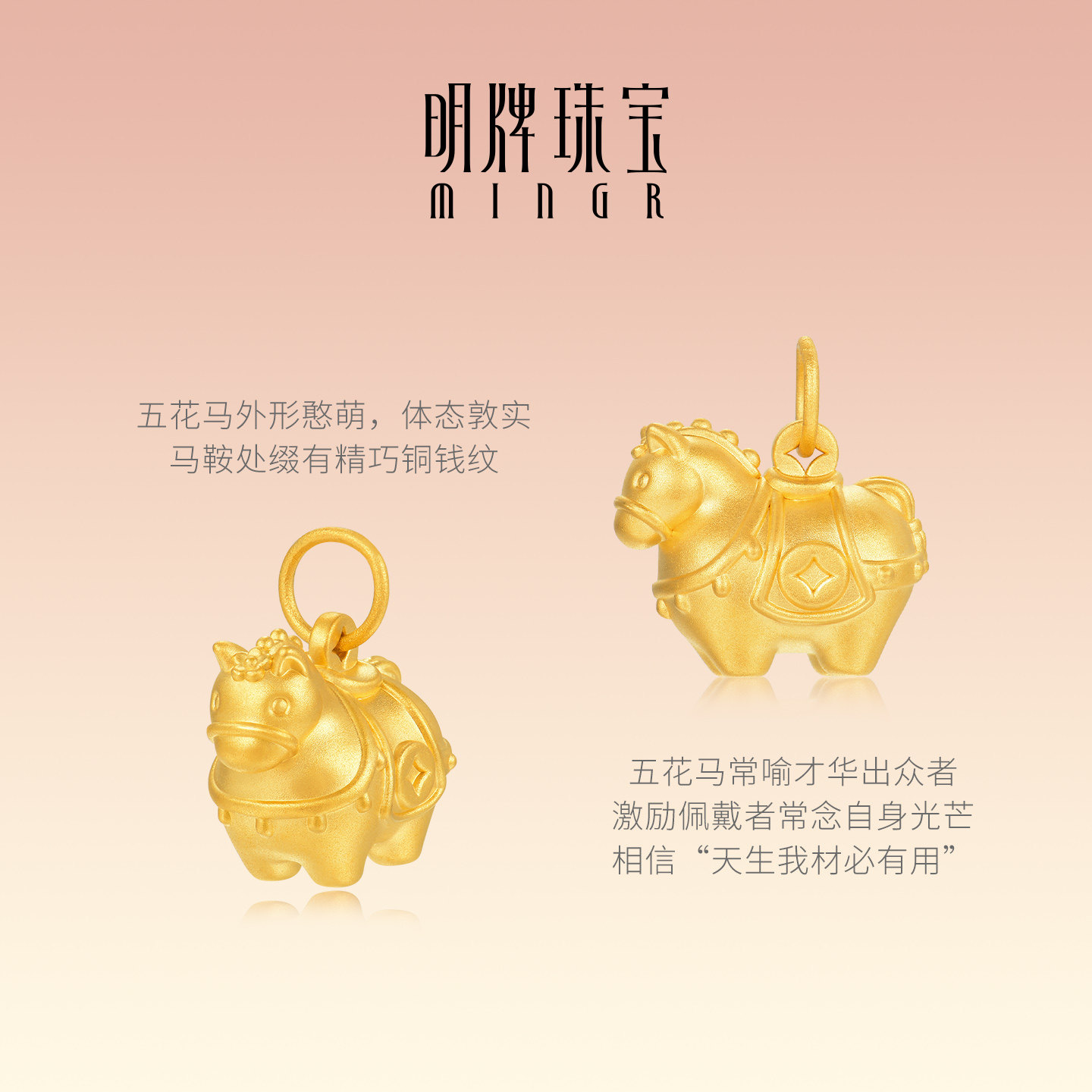 💥揭秘明牌珠宝五花马硬金吊坠!生肖马年黄金项坠,让你爱不释手🔥