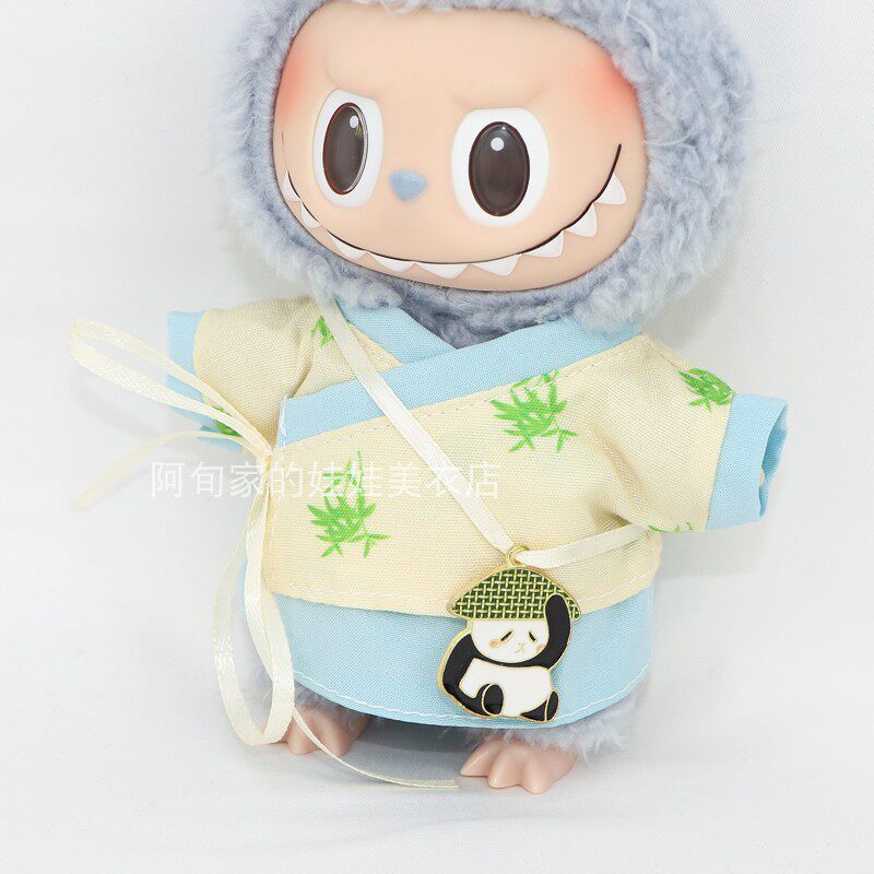 📚 挂件15cm17cm心动马卡龙搪胶脸拉布布娃衣Labubu汉服古风熊猫竹子