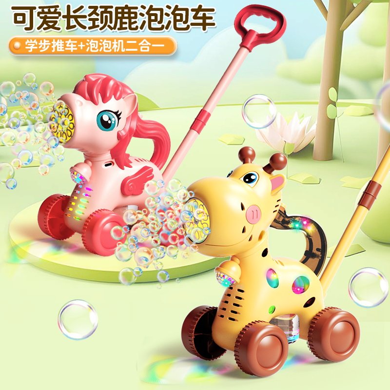 📚 新款儿童手持推车自动吹泡泡机户外手推男女孩益智玩具生日礼物