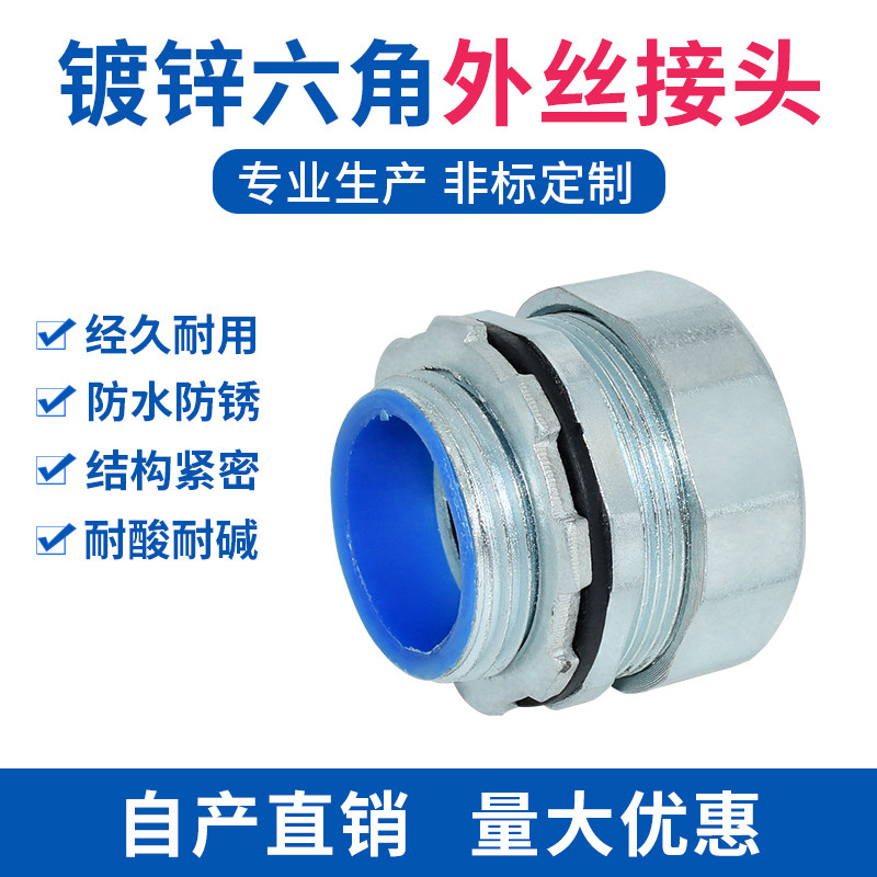 📚 六角金属镀锌软管接头蛇皮端箱外丝牙螺纹三柱锁母格兰头杯梳盒接